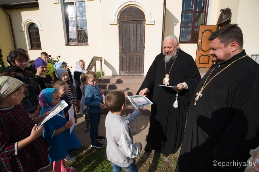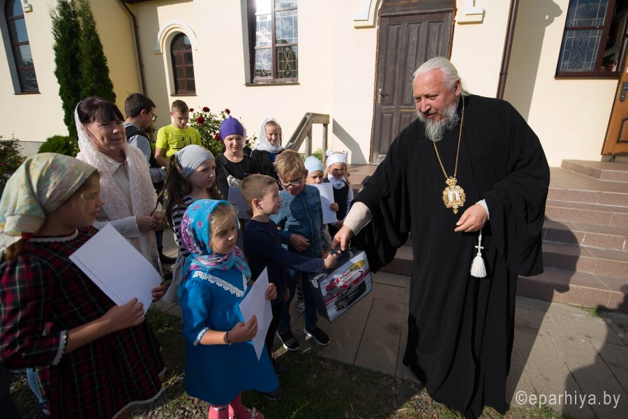 Всенощное бдение в канун праздника Преображения Господня 18 августа 2019г. Высокопреосвященнейший Стефан. архиепископ Гомельский и Жлобинский совершил в одноименном храме г.Гомеля. Высокопреосвященнейшему сослужили: секретарь Гомельской епархии протоиерей Георгий Алампиев, председатель отдела по архитектуре и строительству протоиерей Георгий Тур,благочинный церквей Гомельского районного округа протоиерей Артемий Кривицкий, благочинный Гомельского городского округа протоиерей Игорь Ольшанов, настоятель прихода протоиерей Олег Кострома, эконом Гомельской епархии протоиерей Владимир Масалитин, настоятель прихода храма преподобного Серафима Саровского протоиерей Сергий Леоньков, настоятель прихода храма святых благоверных князей Петра и Февронии Муромских протоиерей Вадим Капшук и духовенство прихода и епархии. В ходе своего визита, в преддверии нового учебного года, Владыка Стефан детям из многодетных и малообеспеченных семей вручил именные сертификаты на оплату учебных пособий, а маленькие прихожане, которые в этом году впервые откроют двери в храм науки, получили от Архипастыря портфели со школьными принадлежностями. По окончании богослужения Владыка поздравил прихожан с праздником и обратился к молящимся со словами Архипастырского назидания. |