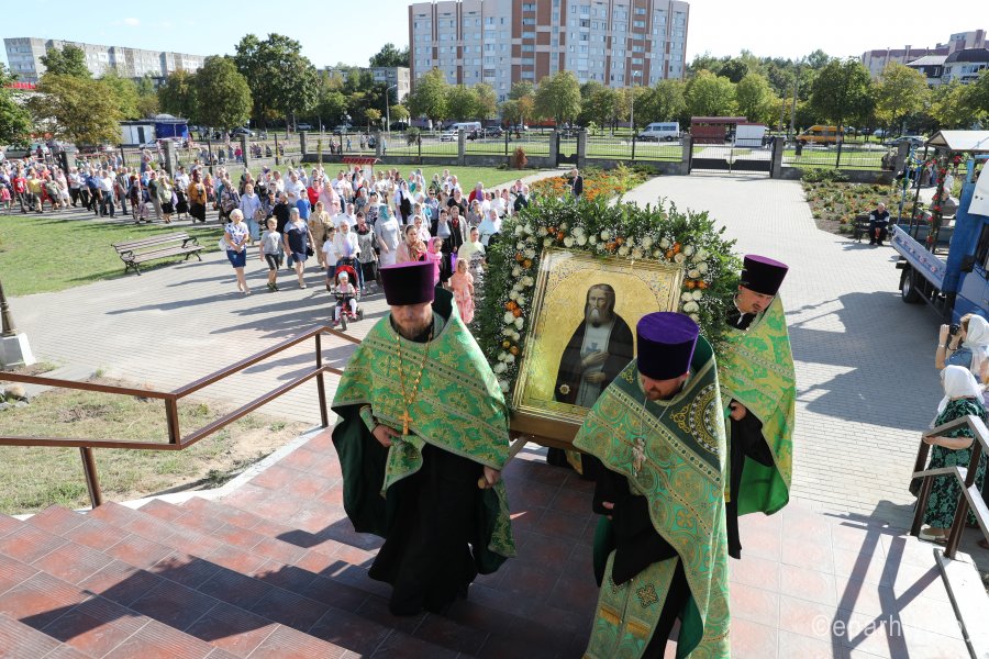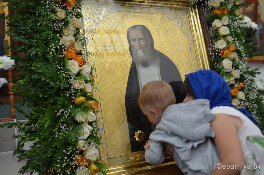 По благословению Высокопреосвященного Стефана, архиепископа Гомельского и Жлобинского 18 августа 2019 г. в г. Светлогорск прибыла великая святыня: икона с частицей мощей преподобного Серафима Саровского. Около 300 жителей города встретили святыню у торгового центра «Березки», откуда крестным ходом, в сопровождении передвижной звонницы храма Преображения Господня в г. Гомеле, доставили в храм Преображения Господня в г. Светлогорске, где и будет находиться святыня до 27 августа. Верующие смогут помолиться у иконы святого, который своим уникальным примером явил чудеса веры и при жизни согревал любовью всякого приходящего к нему. Святой преподобный Серафим Саровский и сегодня помогает всем верующим, обращающимся к нему с искренней молитвой. |