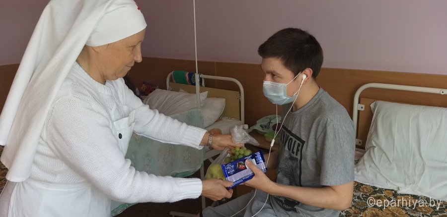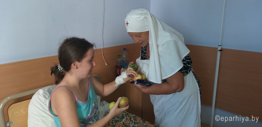 В день Преображения Господня 19 августа 2019г. сестричество во имя св. вмч. Варвары отправилось в Республиканский центр радиационной медицины, чтобы поделиться душевным фаворским светом и поддержать людей, на долю которых выпали испытания. Сестричество уж много лет проводит акцию "Спас в ладошке" и поздравляет болящих с праздником Преображения Господня. Сестры посетили отделения детской и взрослой гематологии, а также иммунопатологии, гинекологии, хирургии, ЧАЭС и офтальмологии. Около 350 пациентов, находящихся на лечении в больнице, а также персонал центра получили в дар освященные яблоки, виноград и другие сладкие подарки. |