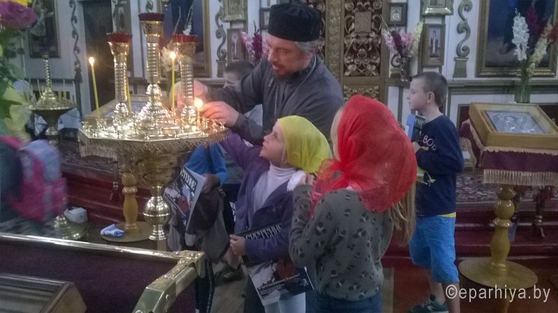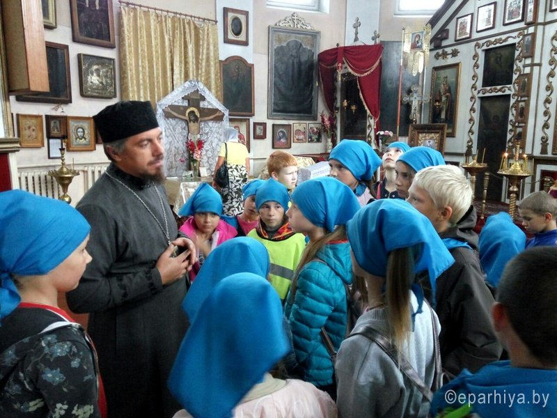 Просветительские мероприятия в рамках реализации Программы сотрудничества между управлением образования Гомельского исполкома и Гомельской Епархией Белорусской Православной церкви, состоялись на базе летних оздоровительных лагерей, лагерей труда и отдыха учреждений образования Чечерского района. Воспитанники пришкольных лагерей ГУО "Гимназия г.Чечерска", "Средняя школа №1 г.Чечерска", "Коммуно-Ленинский ясли-сад - базовая школа" побывали на экскурсии в храме Преображения Господня в г.Чечерске. Клирик храма иерей Василий Ковальчук познакомил ребят с историей храма, главными святынями, рассказал истории икон. За чашкой чая ребята смогли задать батюшке волнующие их вопросы, на которые получили очень полные и поучительные ответы. Ребята из Ботвиновской базовой школы посетили храм Покрова Пресвятой Богородицы в д.Ботвиново, пообщались с настоятелем храма иереем Александром Хамылевским. Во время встречи ребята узнали об устройстве православного храма и о том, как нужно вести себя в храме. На базе лагеря для ребят был организован просмотр мультфильма "Сказ о Петре и Февронии". Воспитанников лагеря Полесской средней школы радушно встретил в храме святителя Николая Чудотворца в д.Полесье настоятель храма иерей Николай Куцаков. Священнослужитель рассказал ребятам историю создания храма, о чудесном обретении престольного креста, чудотворной иконе Бога Отца, возвращении святыни - Казанской иконы Божьей Матери. Воспитанники лагерей от всей души благодарили священников за интересные и познавательные экскурсии. |