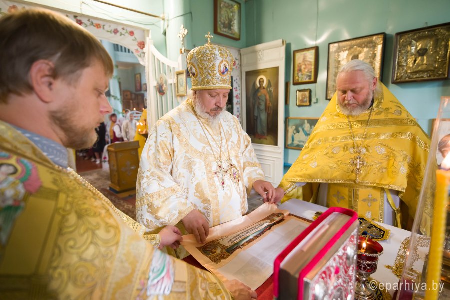 Божественную литургию в храме Успения Пресвятой Богородицы в д. Городец Рогачевского округа 25 августа 2019г. в неделю 10-ю по Пятидесятнице возглавил Высокопреосвященнейший Стефан архиепископ Гомельский и Жлобинский. Высокопреосвященнейшему сослужили: секретарь Гомельской епархии протоиерей Георгий Алампиев, благочинный церквей Рогачевского районного округа протоиерей Алексей Смотрицкий, настоятель прихода и духовенство епархии. По окончании богослужения Владыка поздравил причастников с принятием Святых Христовых Таин, обратился к молящимся со словами Архипастырского назидания и в память об этом дне раздал иконки. |