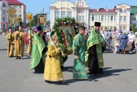27 августа 2019г. икона с частицей мощей преподобного Серафима Саровского прибыла в Рогачёв. В год, когда Русская Православная Церковь празднует 265-летие со дня рождения преподобного Серафима Саровского, по благословению Высокопреосвященнейшего Стефана, архиепископа Гомельского и Жлобинского, икону с частицей мощей преподобного крестным ходом проносят по всем благочинным округам Гомельской епархии. Рогачёвцы и гости города встретили святыню на центральной площади и крестным ходом перенесли в храм святого благоверного князя Александра Невского. Пока священнослужители и верующие прославляли преподобного Серафима Саровского пением акафиста, святыня под звон колоколов передвижной звонницы храма Преображения Господня в г.Гомеле проехала по городу, освятив его своим пребыванием. До 7 сентября верующие смогут помолиться у иконы святого, который своей жизнью явил чудеса веры, согревал любовью всякого приходящего к нему и по сей день помогает молитвенно прибегающим к нему за помощью. |