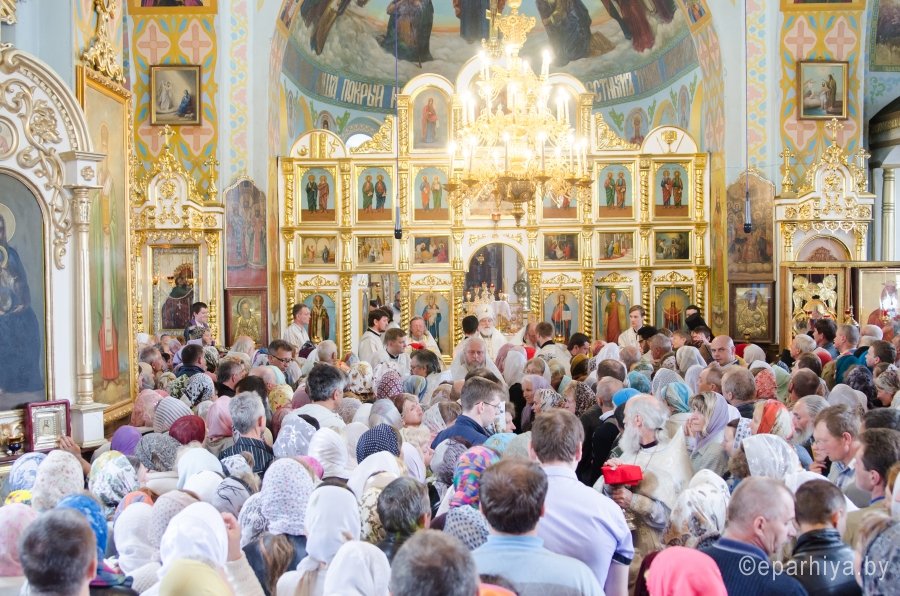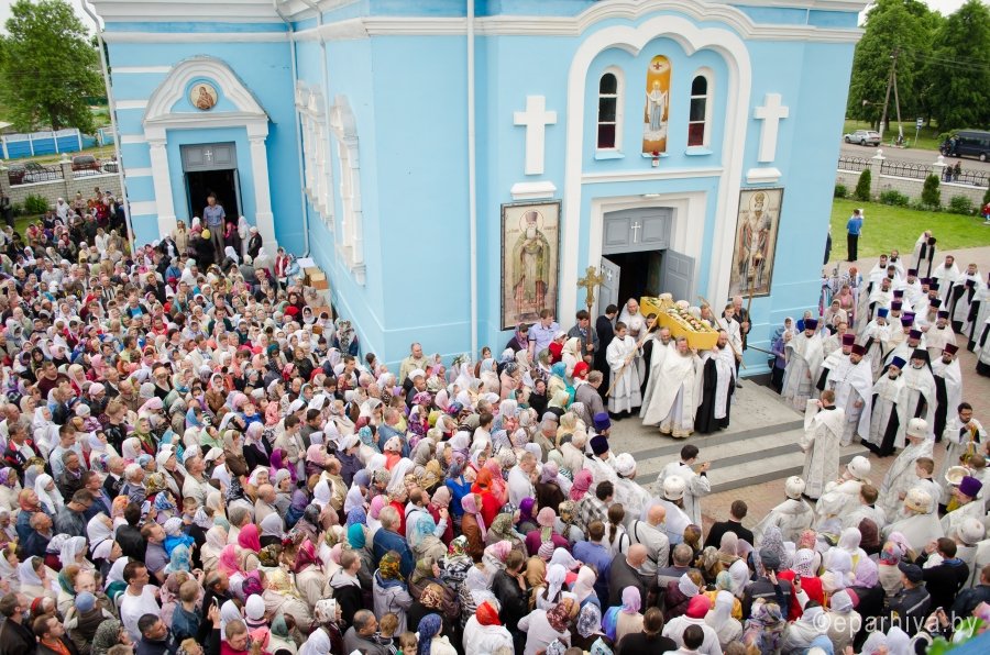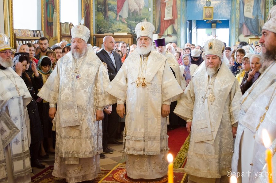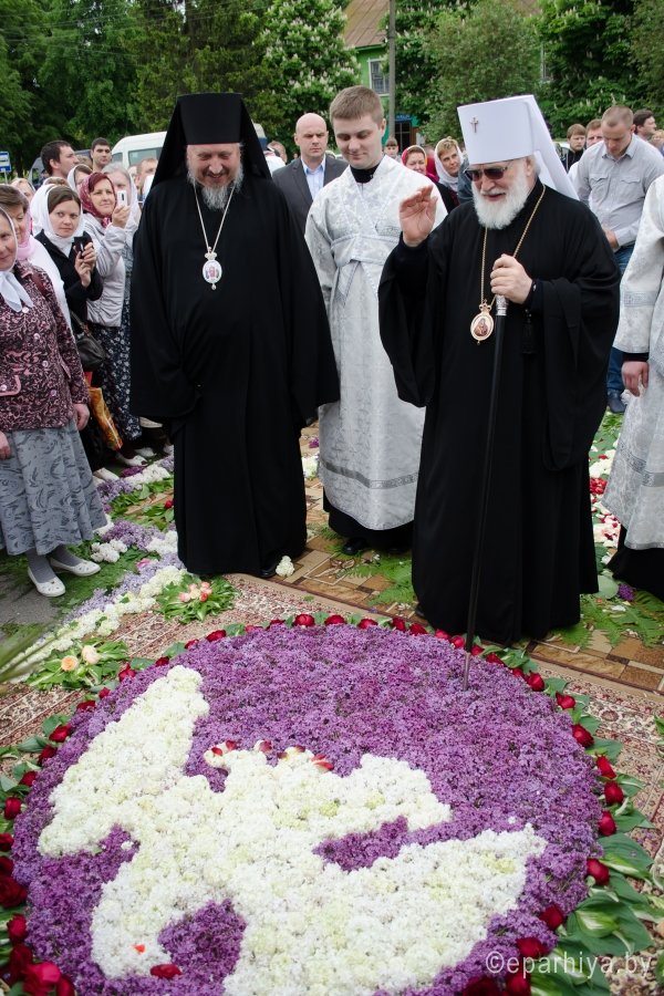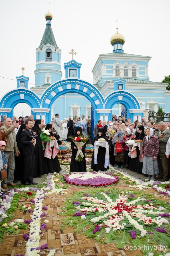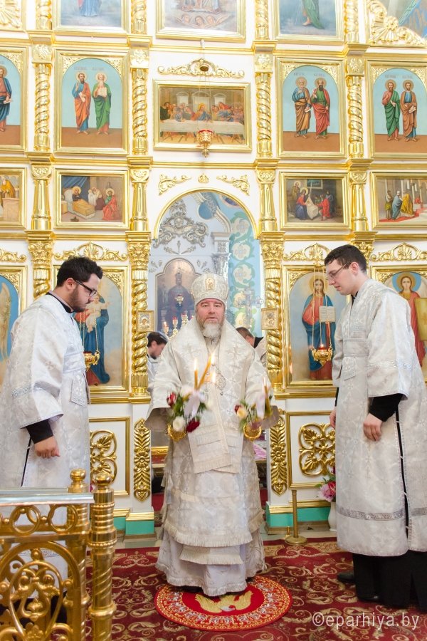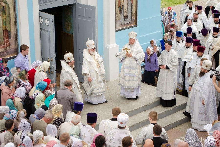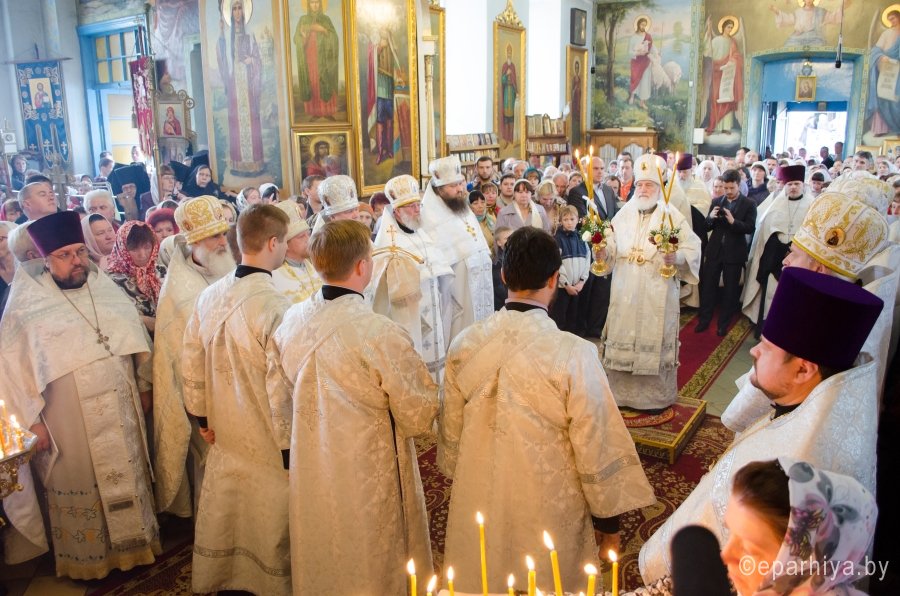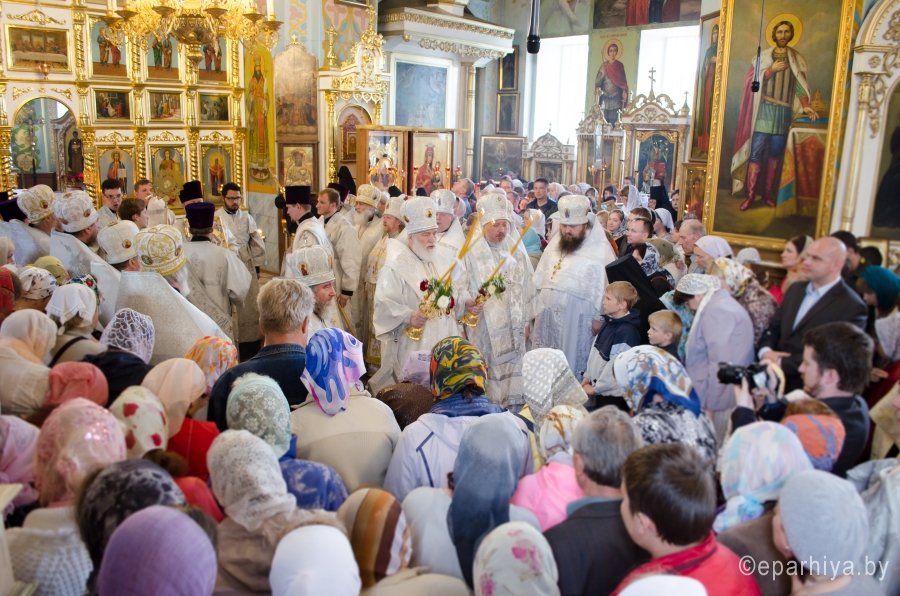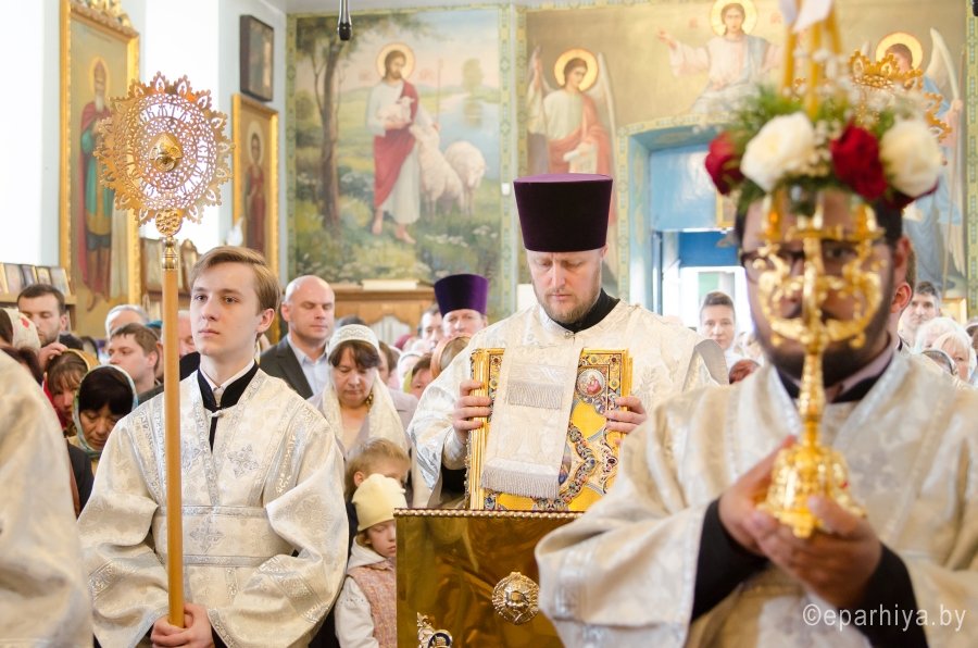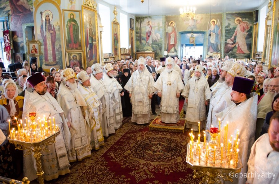 23 мая, при большом стечении духовенства и народа в агрогородке Корма Добрушского района состоялись торжества, посвященные дню памяти св.прав. Иоанна Кормянского. Многочисленный Крестный ход в д.Огородня предварял Божественную литургию, которую совершил митрополит Павел в совместном служении епископа Гомельского и Жлобинского Стефана и епископа Туровского и Мозырского Леонида. Преосвященнейший Стефан и председатель Добрушского райисполкома Мохарева Ольга Федоровна встретили Высокопреосвященнейшего Владыку хлебом и солью у въезда в город. Высокопреосвященнейший Владыка приветствовал всех присутствующих словами: - Обращаясь в молитве к святому Иоанну мы надеемся, что все кто сегодня присутствует здесь, по окончании литургии будет наполнен духовной радостью. Архипастырям сослужили: секретарь Гомельской епархии протоиерей Георгий Алампиев, благочинный монастырей Гомельской епархии архимандрит Амвросий(Шевцов), благочинные округов, руководители отделов Гомельской епархии. В ходе богослужения Высокопреосвященнейший митрополит Павел вознес молитву о мире в братской Украине. Проповедь перед Причастием произнес настоятель храма Рождества пресвятой Богородицы г.п. Урицкое Гомельского районного благочинного округа протоиерей Артемий Кривицкий: -- В воспоминаниях людей праведный Иоанн остался человеком, делающим добрые дела, он призывал, чтобы верующий человек жил по заповедям своей Веры и дарил любовь ближним. За богослужением молились: игуменья Свято-Иоанно-Кормянского монастыря Платонида, игуменья Свято-Успенского монастыря Иоанна и игуменья Свято-Тихвинского монастыря Вера и сестры обителей. Игуменья Вера в своих словах отметила: -- В этот день прославляется покровитель наших земель — праведный Иоанн Кормянский. Мы очень часто обращаемся к этому святому в молитвах и просим у него помощи и Небесного заступничества. Для нас отец Иоанн является примером праведной христианской жизни. Богослужебные песнопения исполнил хор прихода храма Иверской иконы Божией Матери г.Гомеля под руководством Лии Сычевой. На богослужении в этот день было много верующих, приехавших со всей Беларуси и стран ближнего зарубежья: - Сегодня день памяти нашего покровителя — Иоанна Кормянского, святого который действительно помогает людям, я это знаю по себе. Мама моей подруги была больна неизлечимой болезнью, приложилась к честным мощам святого и, через некоторое время, недуг прошел, - делиться паломник из Гомеля Лариса. По окончании Крестного хода с ракой с мощами святого праведного Иоанна Кормянского, в своей речи Преосвященнейший Стефан обратился к Митрополиту: - Благодарю Вас за визит на гомельщину и желаю, чтобы под вашим отеческим омофором мы шли дорогой спасения, дорогой, которая приведет нас к терпению сердец наших и Царству Небесному. В ответном слове Митрополит поблагодарил всех собравшихся за общую молитву и поздравил с праздником. В ходе своего визита Высокопреосвященнейший Владыка Павел совершил рабочую встречу с Председателем Гомельского областного исполнительного комитета Владимиром Андреевичем Дворником. В беседе Владыка поблагодарил губернатора за поддержку в деле духовно-нравственного воспитания и преподнес в дар святой образ. |