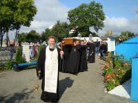 31 августа в храме Преображения Господня в г. Ветка состоялось отпевание диакона Виталия Тришина, прослужившего Богу в священном сане около 10 лет, и скончавшегося после тяжёлой продолжительной болезни 29 августа. Накануне кончины отца Виталия он был напутствован Святыми Дарами. В день погребения проводить усопшего в последний путь пришли те, кто знал, уважал и любил его. Перед началом чина погребения была совершена Божественная литургия, которую возглавил благочинный Чечерского округа протоиерей Геннадий Хаткевич в сослужении настоятеля храма Преображения Господня протоиерея Михаила Борисёнка и духовенства Чечерского благочиния. После завершения отпевания протоиерей Геннадий Хаткевич выразил своё соболезнование прихожанам, родным и близким почившего и призвал к молитве за отца Виталия, чтобы Господь упокоил его душу в обителях небесных, "где нет ни болезни, ни печали, ни воздыхания, но жизнь бесконечная». |