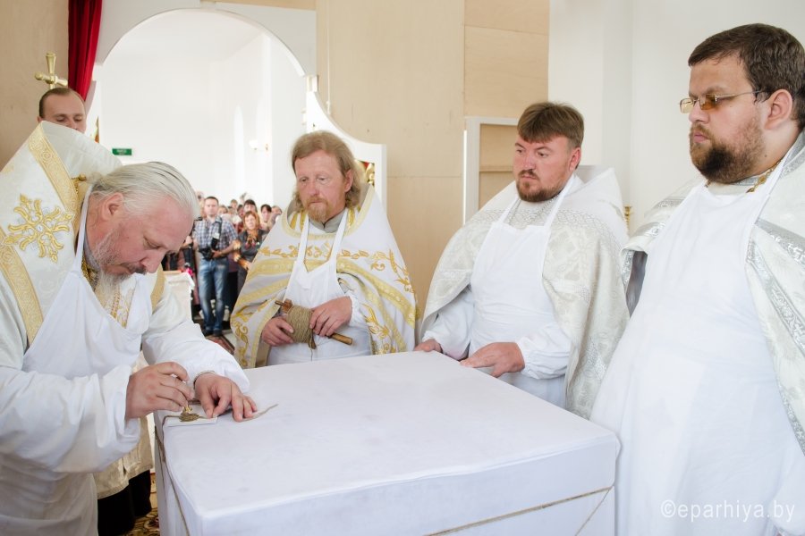 17 мая 2015г., в день памяти святителя Николая Чудотворца, Преосвященнейший Стефан возглавил Божественную литургию и чин освящения храма архиепископа Николая Японского в д.Дуброво Светлогорского благочинного округа. Преосвященнейшему сослужили: благочинный Светлогорского округа протоиерей Владимир Семенов и духовенство благочиния. По окончании богослужения особо потрудившиеся при строительстве храма были отмечены медалями Иоанна Кормянского и Архиерейскими грамотами. |