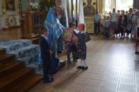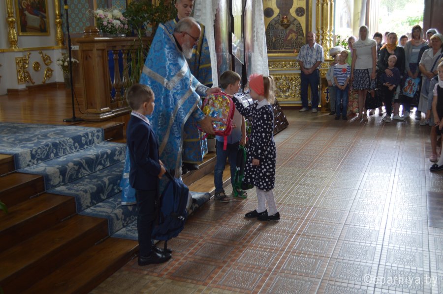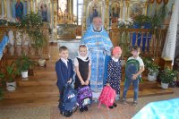 1 сентября в Свято-Успенском соборе г. Речицы после Божественной литургии для всех, кто в этом году садиться за школьные парты и вступает в число студентов, был отслужен благодарственный молебен. В этот день много учащихся пришли в храм, чтобы совместно с учителями и родителями помолиться перед новым учебным годом, временем новых знаний, открытий и свершений. С пастырским наставлением ко всем присутствующим обратился настоятель собора, протоиерей Алексий Пешко. Он поздравил ребят с наступающим учебным годом, пожелал успехов в учебе, преподал Божье благословение всем учащимся и окропил их святой водой. В рамках проводимой благотворительной акции "Соберём портфель в школу", 4 ученика начальной школы получили в дар портфели со школьными принадлежностями. |