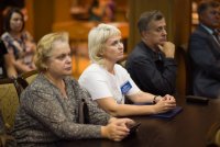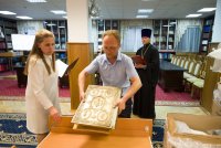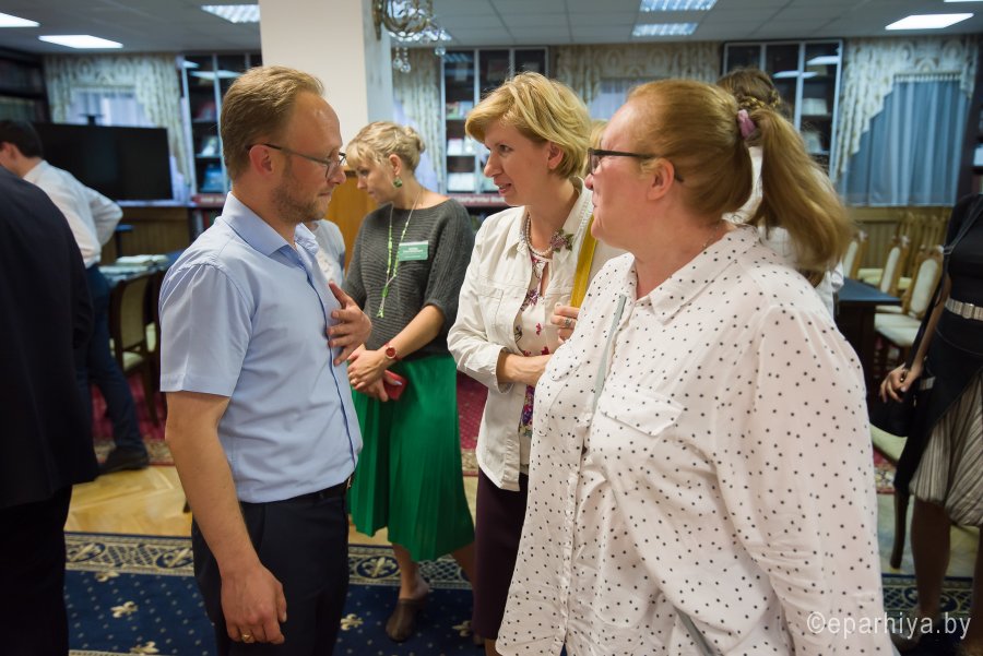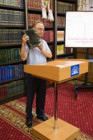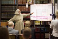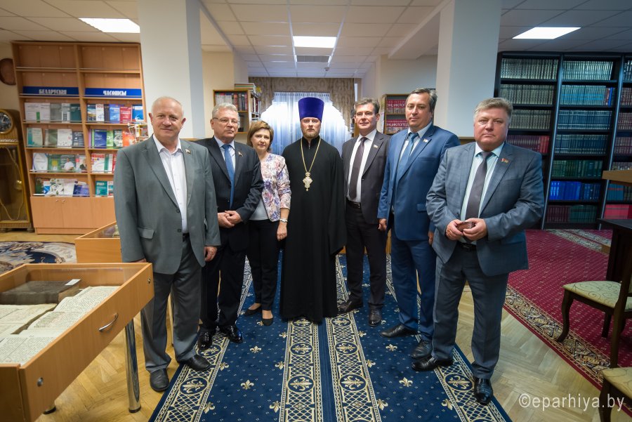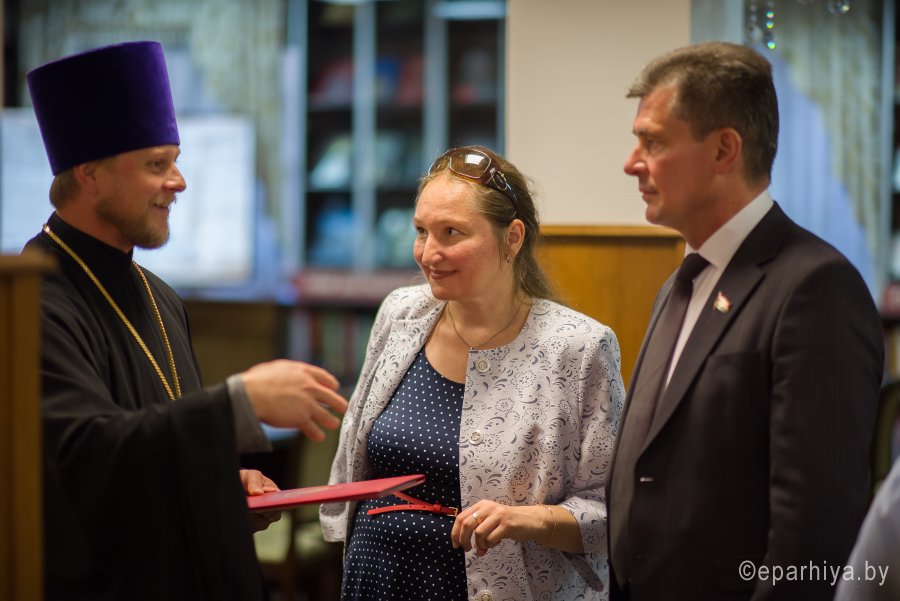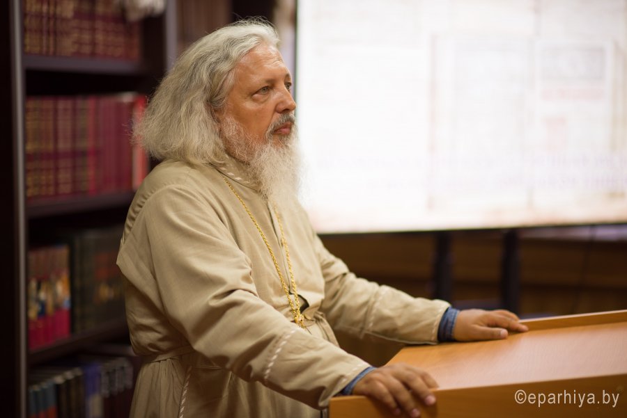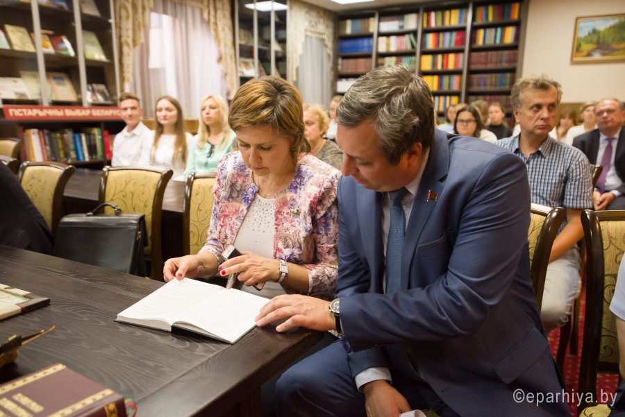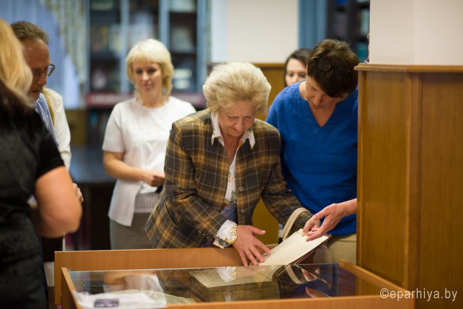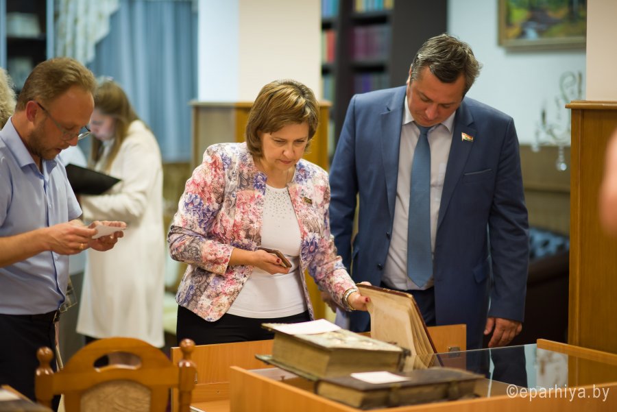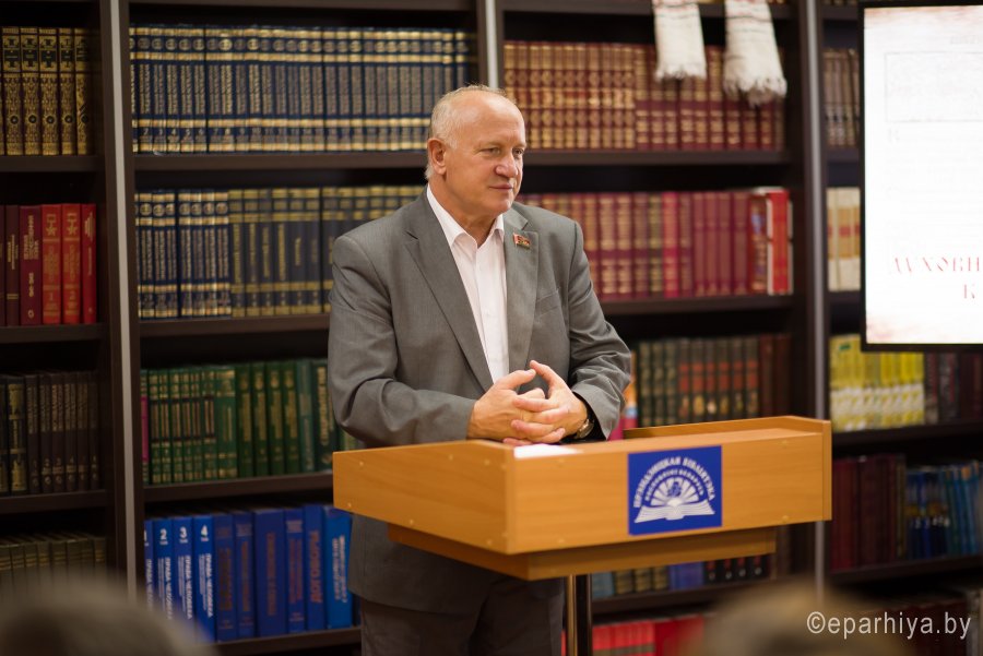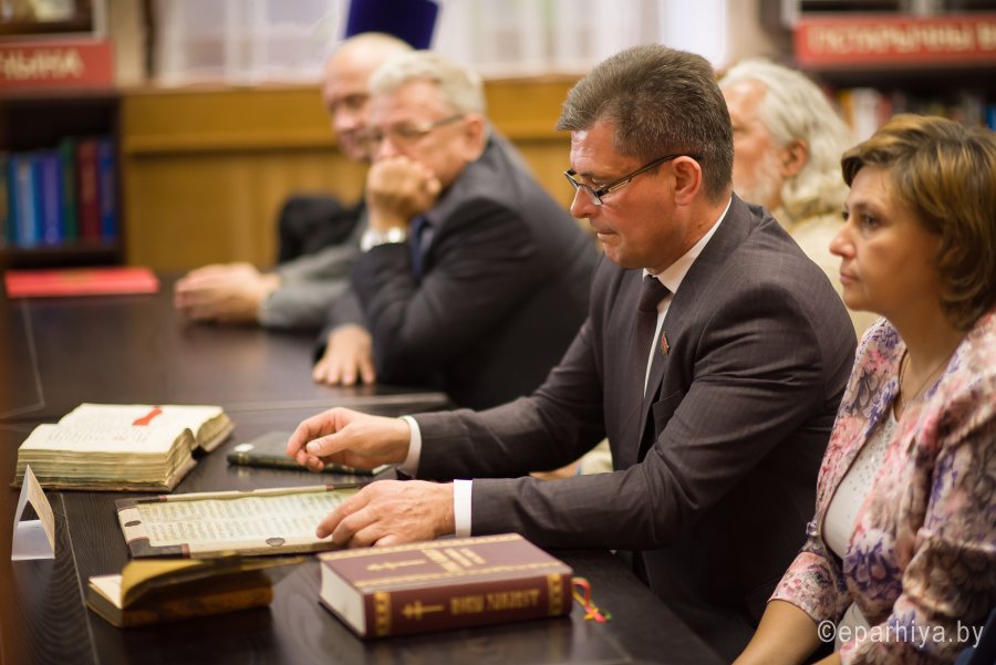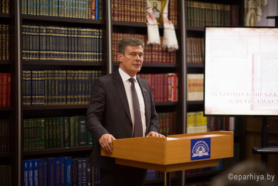 В рамках мероприятий, приуроченных к знаковому событию в культурной жизни нашей страны – Дню белорусской письменности – в Президентской библиотеке Республики Беларусь состоялось открытие книжной выставки «Духовных книг божественная мудрость: к истокам белорусской книги». В открытии выставки приняли участие секретарь Гомельской епархии протоиерей Георгий Алампиев и заведующий канцелярией епархии Черняков Василий Владимирович. На выставке представлено более двадцати кириллических старопечатных изданий XVII-XVIII веков, такие как «Служебник» (1601), «Aнфологион» (1619), «Триодион» (1664), «Псалтырь» (1737), редкие и уникальные издания «Нового Завета» из фондов Президентской библиотеки Республики Беларусь, Историко-археологического кабинета Гомельской епархии и Музея Библии Института теологии имени святых Мефодия и Кирилла Белорусского государственного университета. Приветственный адрес участникам мероприятия направил министр информации Республики Беларусь А.Н. Карлюкевич, отметив, что книга со времен Евфросиньи Полоцкой и Кирилла Туровского всегда была для белорусов животворным родником и надежным фундаментом национального развития. Особо подчеркивалось, что сегодня государство активно поддерживает национальное информационное пространство, отечественное книгоиздание с целью консолидации общества и утверждения высоких моральных ценностей и идеалов. Приветственный адрес от правящего архиерея Гомельской епархии архиепископа Гомельского и Жлобинского Стефана зачитал секретарь Гомельской епархии протоиерей Георгий Алампиев. В нем говорится, что «…выставка «Духовных книг божественная мудрость: к истокам белорусской книги» есть ещё одно свидетельство доброго соработничества государства и Церкви в нашей стране на ниве сбережения богатого историко-культурного и духовного наследия нашего народа. <…> Открывая эту выставку, мы свидетельствуем о значимости книги и чтения в современном обществе и понимании этого на государственном уровне».Среди гостей мероприятия были представители Белорусской православной церкви, депутаты Палаты представителей Национального собрания Республики Беларусь, студенты «Института теологии имени святых Мефодия и Кирилла» Белорусского государственного университета, исследователи литературы. С приветственными словами выступили депутаты Палаты представителей Национального собрания Республики Беларусь Евгений Буниславович Адаменко и Олег Федорович Левшунов. Об особенностях кириллических старопечатных изданий XVII-XVIII веков и переводе книг Священного Писания на современный белорусский язык рассказал первый проректор «Института теологии имени святых Мефодия и Кирилла» Белорусского государственного университета, лауреат премии Президента Республики Беларусь «За духовное возрождение» протоиерей Сергий Гордун. Интересными фактами об уникальных экспонатах Историко-археологического кабинета поделился с присутствующими заведующий канцелярией Гомельской епархии Василий Владимирович Черняков. Среди гостей мероприятия было немало людей, которые не только сохраняют и исследуют памятники кириллического книгопечатания, но и работают над их возвращением читателю. О проекте «Музей Библии» Института теологии имени святых Мефодия и Кирилла Белорусского государственного универ