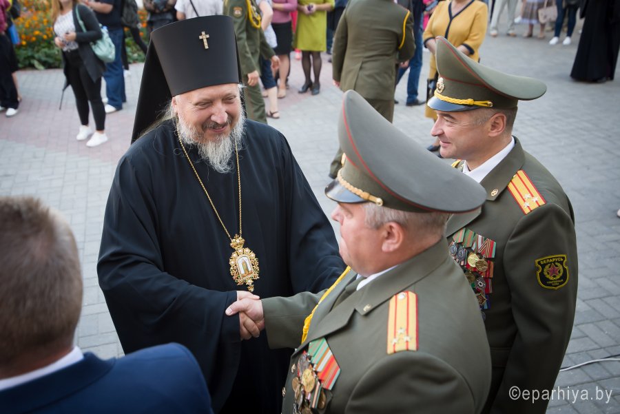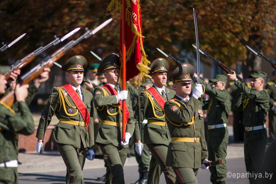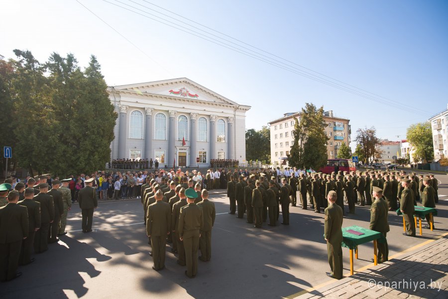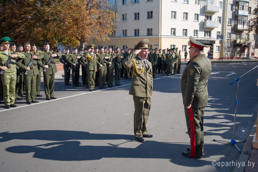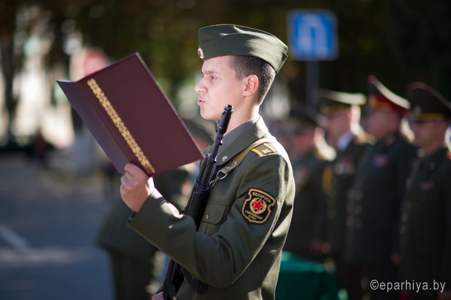 7 сентября 2019г. состоялось одно из важнейших событий в жизни каждого военнослужащего – принятие военной присяги курсантами военно-транспортного факультета Белорусского государственного университета транспорта - торжественной клятвы, даваемой каждым гражданином при поступлении на военную службу в Вооружённые Силы Республики Беларусь. Открыл торжественное мероприятие начальник Департамента транспортного обеспечения Министерства обороны Республики Беларусь генерал-майор Шаплавский Ю.Н. На мероприятии также присутствовали глава администрации Железнодорожного района Уткин В.Ю., ректор Белорусского государственного университета транспорта доктор физико-математических наук Кулаженко Ю.И., военный комиссар Гомельской области полковник Кривоносов А.В., представители взаимодействующих структур и организаций. С напутственным словом к молодому пополнению обратился Высокопреосвященнейший Стефан архиепископ Гомельский и Жлобинский: «Я уверен, что вы с честью примете это послушание, ибо это большая заслуга с достоинством и любовью служить на благо Матери-Церкви и своей Родине…» После благословления владыки председатель отдела по взаимодействию с Вооруженными Силами и правоохранительными органами Гомельской епархии протоиерей Игорь Ольшанов окропил Святой водой личный состав факультета и приглашенных гостей. Завершилось мероприятие плац-концертом курсантов. |