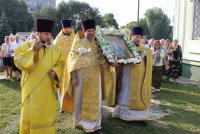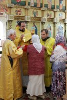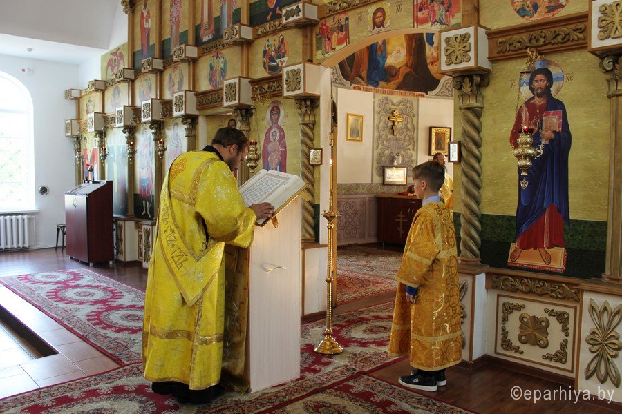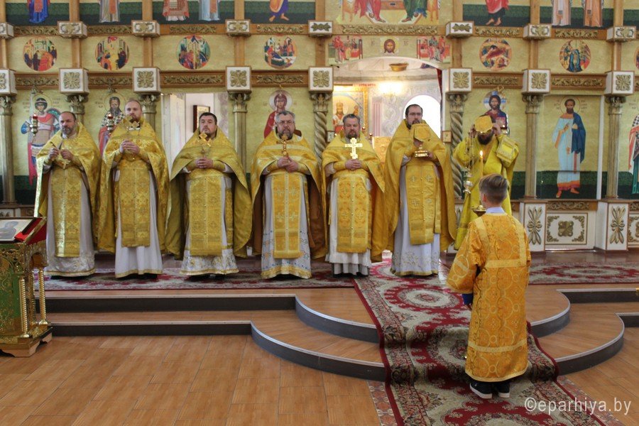 09 сентября 2019г., в приходе храма святого праведного Иоанна Кормянского в г. Гомеле молитвенно чтили память своего небесного покровителя. По случаю престольного праздника божественную литургию в храме возглавил благочинный церквей Гомельского городского округа протоиерей Игорь Ольшанов, в сослужении настоятеля прихода храма Покрова Пресвятой Богородицы в д. Телеши Гомельского района протоиерея Сергия Вараксина, настоятеля прихода храма св.прп. Серафима Саровского в г. Гомеле, протоиерея Сергия Леонькова, настоятеля прихода храма Успения Пресвятой Богородицы в аг. Красное Гомельского р-на протоиерея Валерий Савельева, настоятеля и духовенства храма св. прав. Иоанна Кормянского в г. Гомеле. Проповедь перед Причастием произнес клирик прихода храма св.прав. Иоанна Кормянского в г. Гомеле протоиерей Александр Миронов. По окончании литургии духовенство и прихожане совершили крестный ход вокруг храма и акафистное пение св. прав. Иоанну Кормянскому, по отпусте протоиерей Игорь Ольшанов обратился к верующим со словами приветствия и поздравления прихожан по случаю 20-летия прихода. |