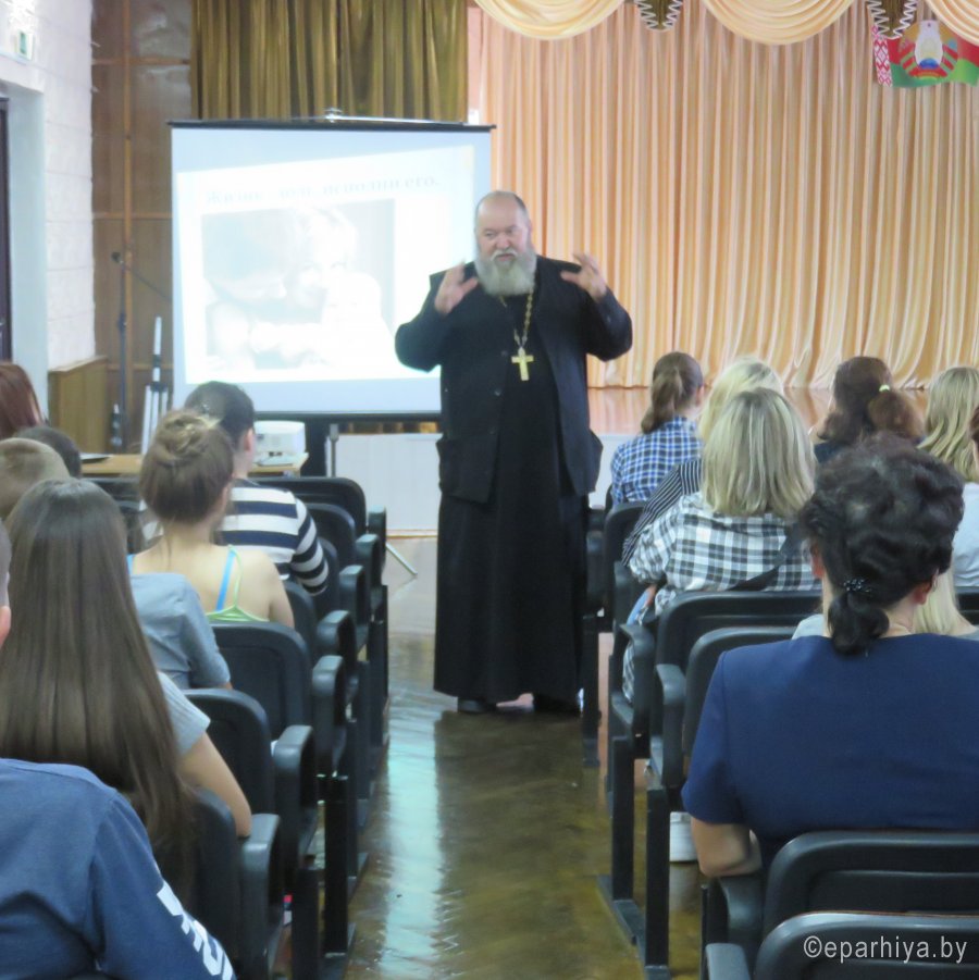 10 сентября прошла встреча настоятеля Храма Покрова Пресвятой Богородицы в д.Переделка иерея Михаила Иванова с учащимися 1 курса УО «Лоевский государственный педагогический колледж» под названием «Ценностное отношение к жизни». На встрече присутствовала координатор Лоевского благочиния Людмила Карпенко, которая провела с учащимися деловую игру «На что я потрачу свою жизнь», в рамках которой учащиеся сделали вывод о том, что жизнь нельзя прожить как черновик, и каждый наш шаг и выбор ведет к тем или иным последствиям. Иерей Михаил Иванов в ходе беседы отметил, что жизнь – это Дар Божий. Мы не созданы для того, чтобы лишать себя жизни, мы живем для спасения. Господь любит всех нас, как своих детей, и хочет, чтобы мы жили. Если человек верующий, он понимает свое жизненное предназначение и доверяет Богу свое бытие. Жизнь набожных людей не имеет границ, т. к. она вечная. Каждый из нас находится в начале пути к этой жизни, борется с грехами, мешающими ему двигаться к Господу. Такой человек не может сойти с нужного маршрута, совершить самоубийство, разве только утратив веру. В заключении священнослужитель отметил, что жизнь человека должна проходить в любви и уважении к ближним и бескорыстной помощи, а эти качества человеческой души очень важны для педагогов, которые призваны быть «целителями душ людских». |
