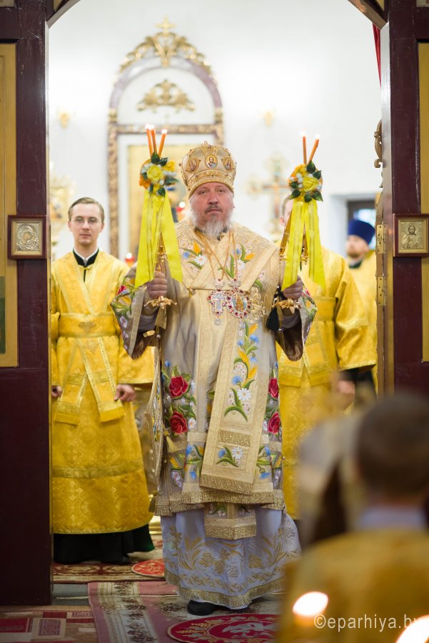 Всенощное бдение в канун дня памяти святого благоверного князя Александра Невского в одноименном храме г.Гомеля 11 сентября 2019г. совершил Высокопреосвященнейший Стефан, архиепископ Гомельский и Жлобинский. Высокопреосвященнейшему сослужили: благочинный монастырей Гомельской епархии архимандрит Амвросий (Шевцов), избранный и нареченный епископом Светлогорским, викарием Гомельской епархии, духовник Гомельской епархии протоиерей Стефан Гладыщук, благочинный церквей Чечерского округа протоиерей Геннадий Хаткевич, благочинный Гомельского городского округа протоиерей Игорь Ольшанов, настоятель прихода протоиерей Владимир Силенко, председатели епархиальных отделов и духовенство епархии. По окончании богослужения Владыка поздравил прихожан с праздником и обратился к молящимся со словами Архипастырского назидания. |