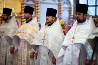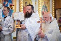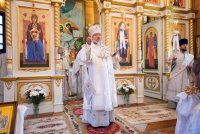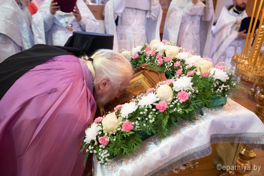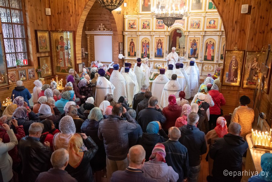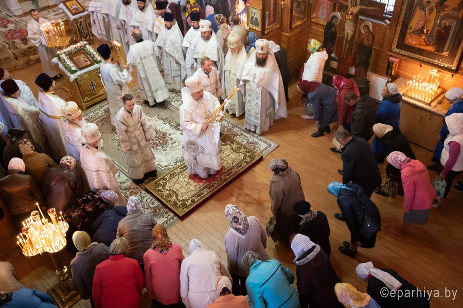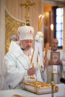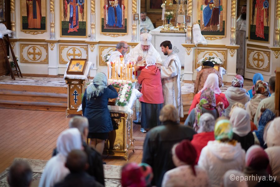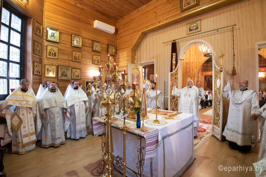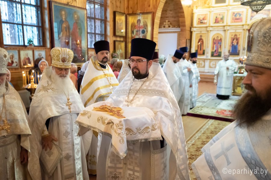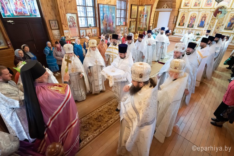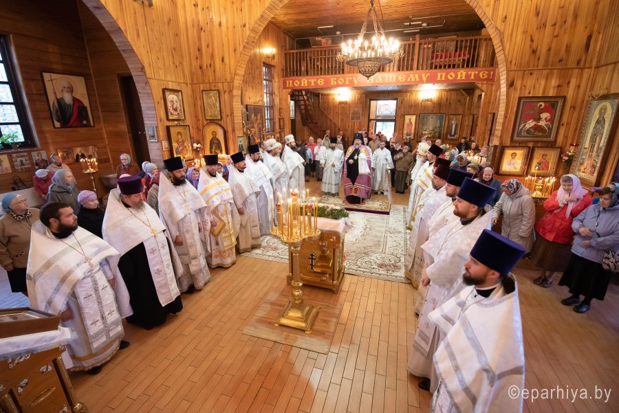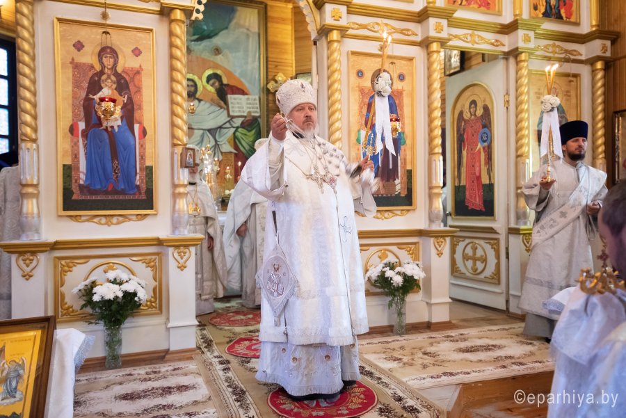 Святой Архангел Михаил является «вождем воинства Господня», одним из высшим небесных сил бесплотных. В православной традиции он почитается как покровитель и защитник народа Божия. Согласно преданию, Архангел Михаил победил восставшего против Бога ангела Денницу, низвергнув его с небес. С этого момента он сделался Архистратигом, то есть верховным военачальником всех Небесных Сил. Божественную литургию в день воспоминания чуда Архистратига Михаила, бывшего в Хонех в храме святого Архистратига Михаила в г.Гомеле 19 сентября 2019г. совершил Высокопреосвященный Стефан, Архиепископ Гомельский и Жлобинский. Высокопреосвященному сослужили: благочинный монастырей Гомельской епархии архимандрит Амвросий (Шевцов), избранный и нареченный епископом Светлогорским, викарием Гомельской епархии, духовник Гомельской епархии протоиерей Стефан Гладыщук, благочинный Гомельского городского округа протоиерей Игорь Ольшанов, благочинный Гомельского районного округа протоиерей Артемий Кривицкий, руководители епархиальных отделов и духовенство епархии. По окончании богослужения Высокопреосвященнейший Стефан поздравил с Днем рождения протоиерея Стефана Гладыщука и преподнес в дар букет цветов. Владыка Стефан поздравил причастников с принятием Святых Христовых Таин, обратился к молящимся со словами Архипастырского назидания и в память об общей молитве раздал всем присутствующим иконки. Во Фригии, недалеко от города Иераполя, в местности, называемой Херотопа, находился храм во имя Архистратига Михаила. В храме на протяжении 60 лет исполнял пономарское служение благочестивый человек по имени Архипп. Язычники решили уничтожить православный храм, соединили вместе две горные реки и пустили единый поток на то место, где он стоял. Святой Архипп усердно молился Архистратигу Михаилу о предотвращении бедствия. Явившийся на его зов архистратиг, полководец всего небесного воинства, ударил жезлом скалу, в ней образовалось огромное отверстие, и поток устремился туда, не причинив никакого вреда храму. Увидев такое дивное чудо, язычники в страхе бежали. Это событие вошло в историю христианства как Чуда архангела Михаила в Хонех. Хоны означает «дыра», «отверстие», «расселина». |