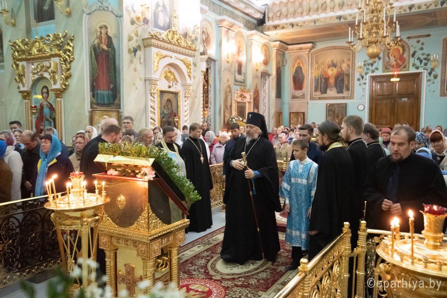 20 сентября 2019г., в канун Рождества Пресвятой Богородицы, Высокопреосвященный Стефан совершил всенощное бдение в Петро-Павловском кафедральном соборе г. Гомеля. Высокопреосвященному сослужили: секретарь Гомельской епархии протоиерей Георгий Алампиев, благочинный Чечерского округа протоиерей Геннадий Хаткевич, ключарь собора иерей Алексей Сергеев и духовенство собора. По окончании богослужения Владыка обратился к молящимся со словами Архипастырского назидания. |
