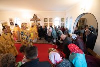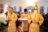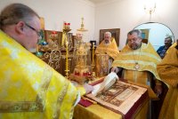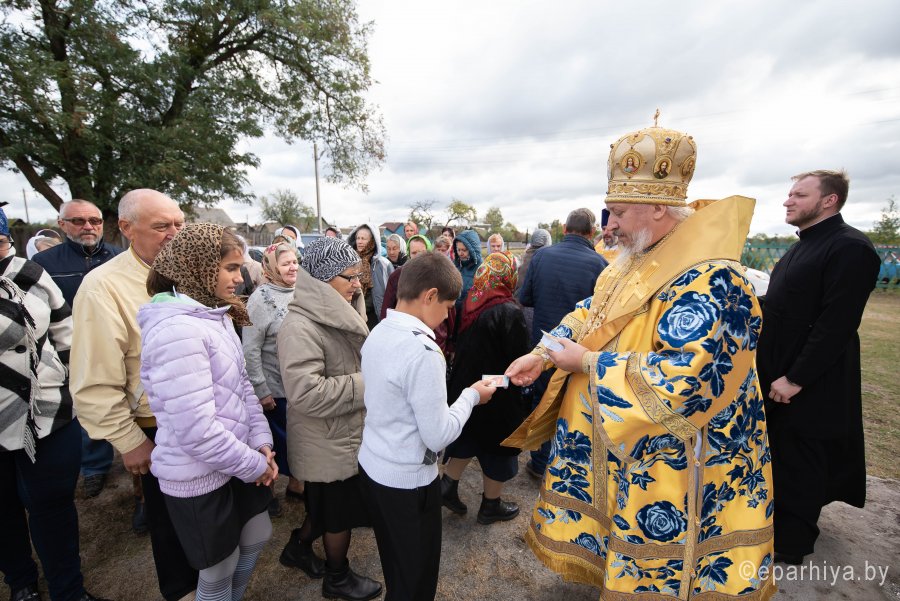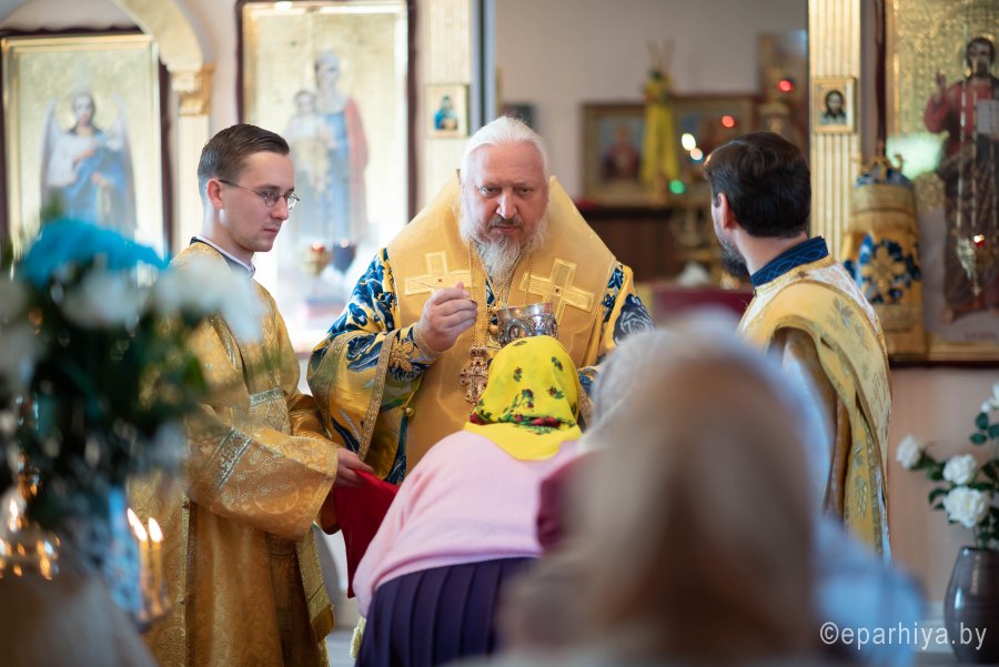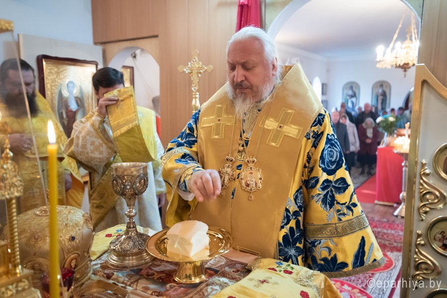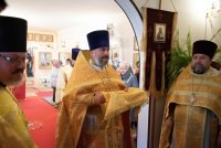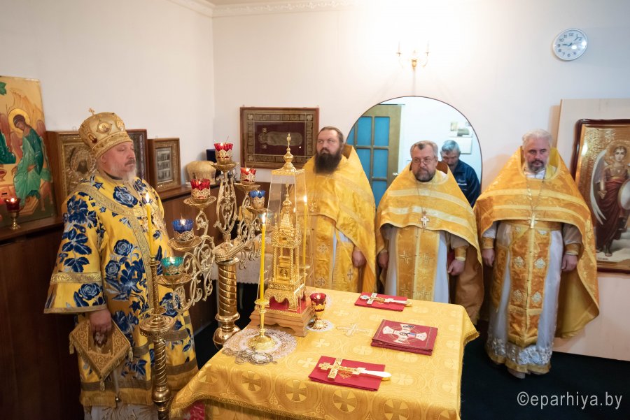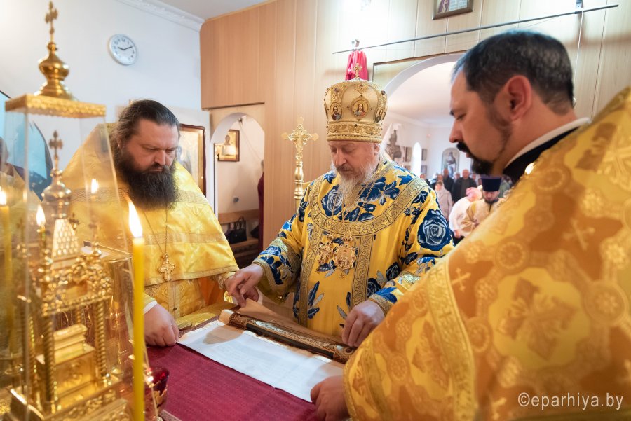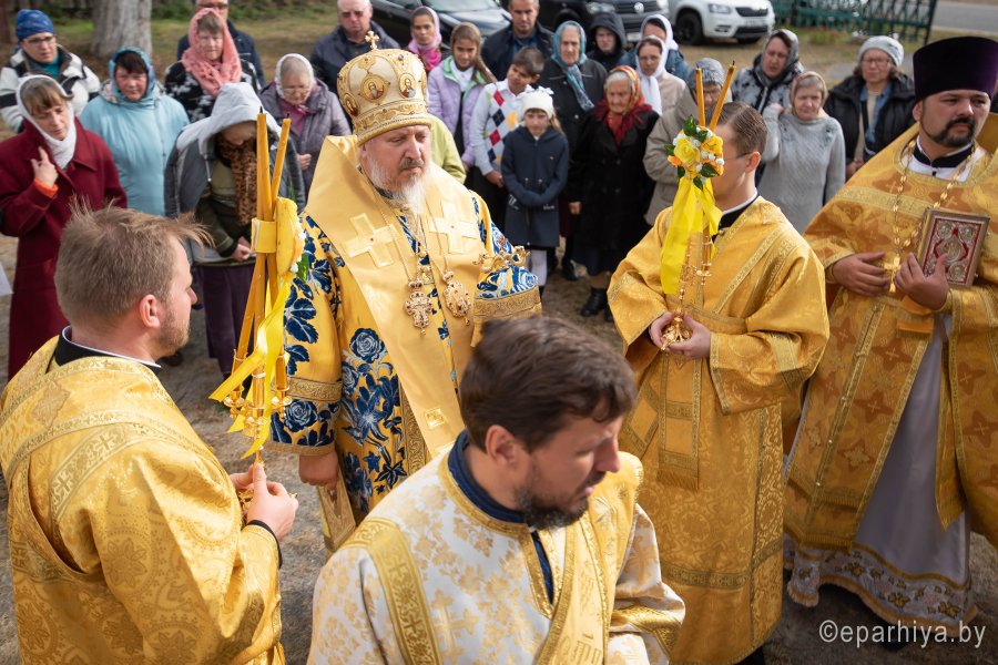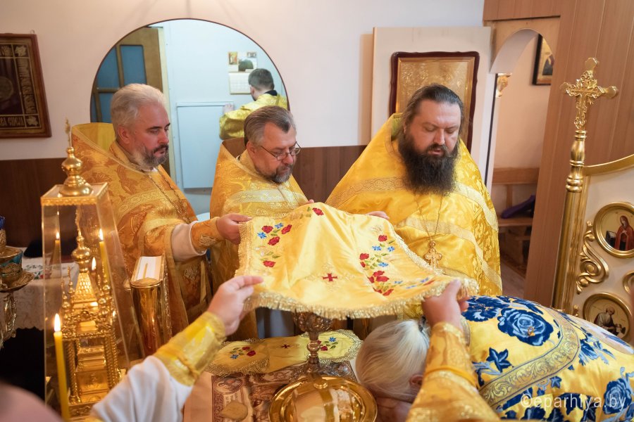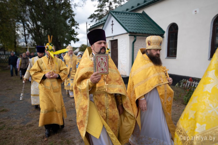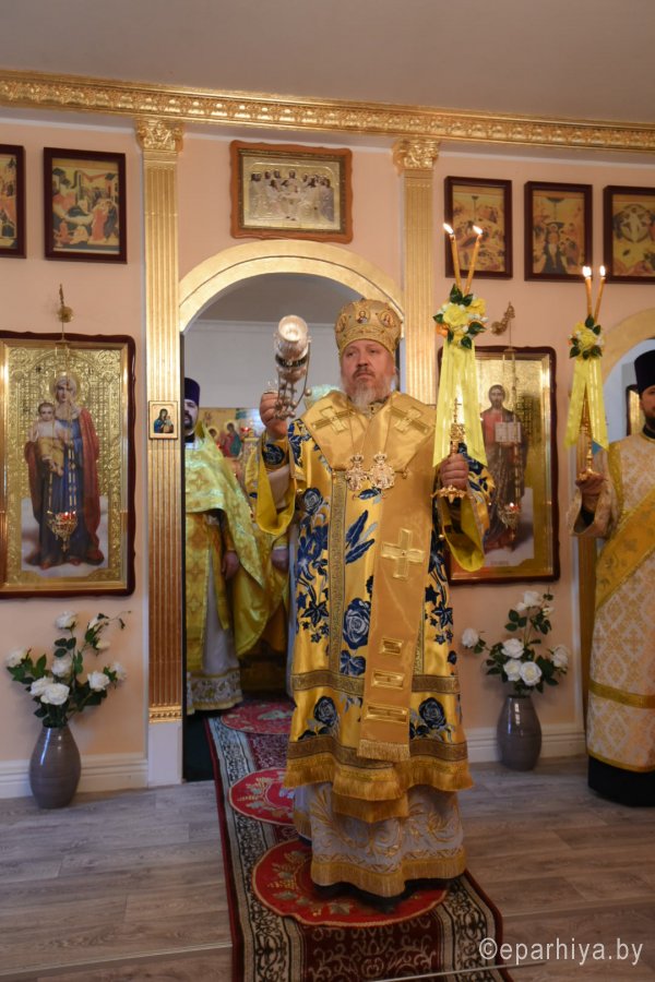 Божественную литургию Неделю 14-ю по Пятидесятнице, в день памяти святителя Феодосия Черниговского в одноименном храме д. Новая Буда совершил Высокопреосвященный Стефан, архиепископ Гомельский и Жлобинский. Высокопреосвященному сослужили: благочинный монастырей Гомельской епархии архимандрит Амвросий (Шевцов), избранный и нареченный епископом Светлогорским, викарием Гомельской епархии, благочинный Гомельского районного округа протоиерей Артемий Кривицкий, настоятель прихода иерей Виталий Мешков и духовенство епархии. По окончании богослужения Высокопреосвященнейший возглавил Крестный ход, поздравил причастников с принятием Святых Христовых Таин, обратился к молящимся со словами Архипастырского назидания и в память об общей молитве раздал всем присутствующим иконки. |