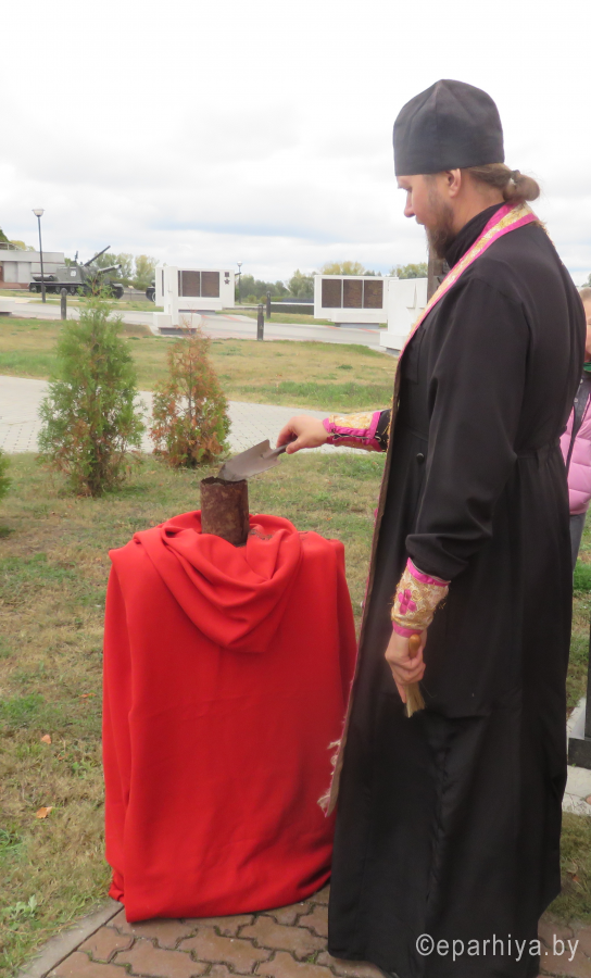 20 сентября 2019 года благочинный церквей Лоевского округа, настоятель Храма Святой Живоначальной Троицы г.п.Лоев, иерей Димитрий Чварков принял участие в торжественном мероприятии у братского захоронения мемориального комплекса героям Днепровской битвы, которое стало частью шествующей по Гомельской области международной акции памяти «Во славу общей Победы», в рамках которой земля, собранная в месте захоронения, помещается в капсулу. Все капсулы с собранной землёй будут переданы в «Храм-Памятник в честь Всех святых и в память о жертвах, спасению Отечества нашего послуживших», где 9 мая 2020 года произойдёт их торжественная закладка в крипте Храма-Памятника. Международная акция памяти «Во славу общей Победы!» проводится в рамках празднования 75-летия Победы советского народа в Великой Отечественной войне с целью гражданско-патриотического и нравственного воспитания подрастающего поколения, приобщения к культуре памяти, формирования основ современной государственности. Акция служит cохранению исторической памяти о военных действиях Великой Отечественной войны и увековечению имён её участников. |