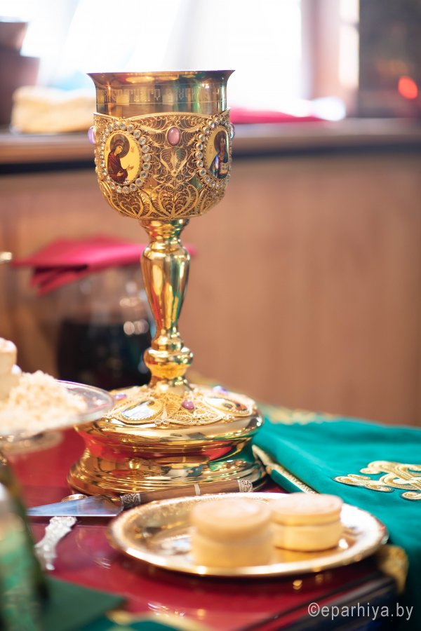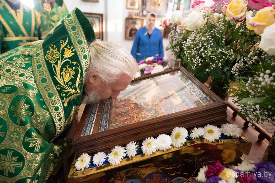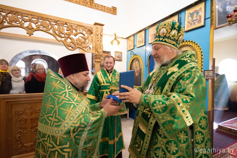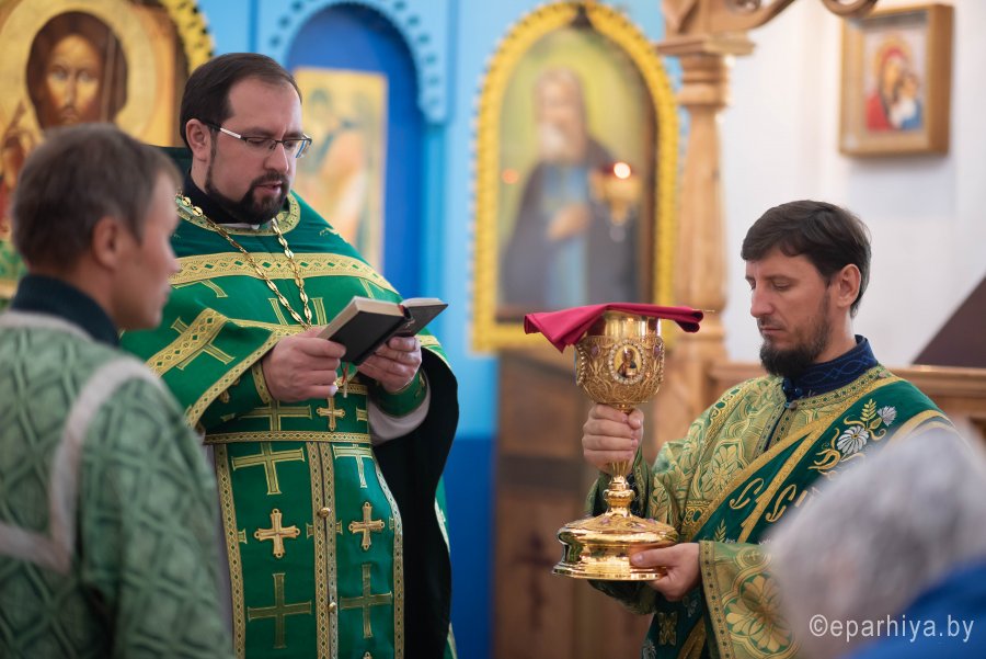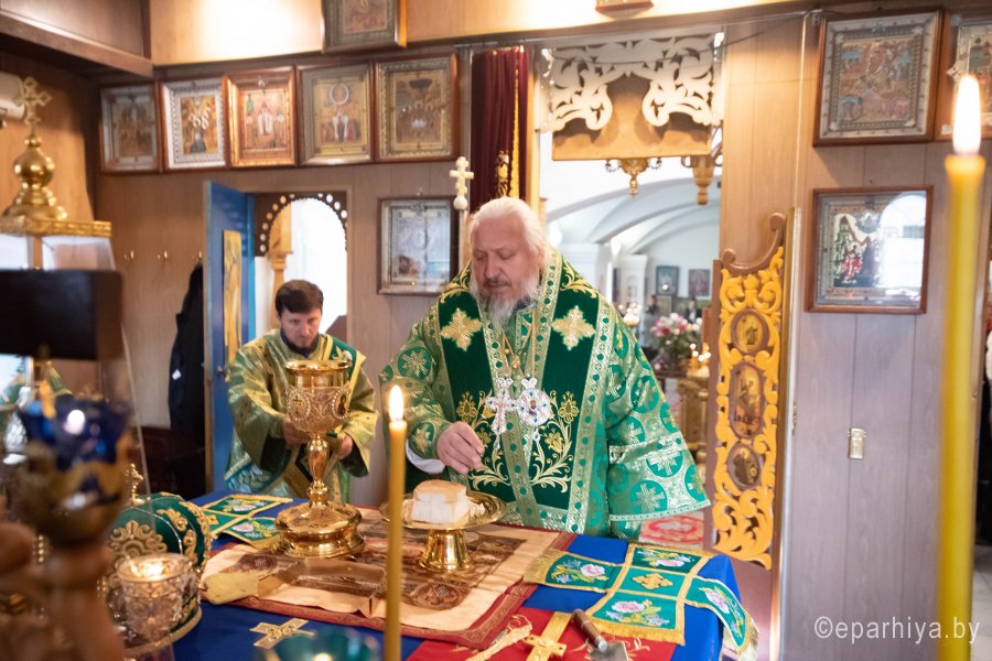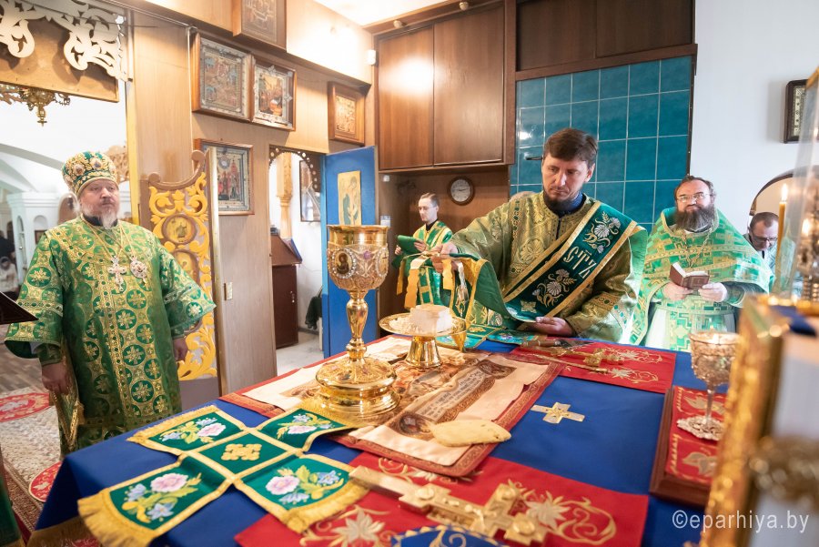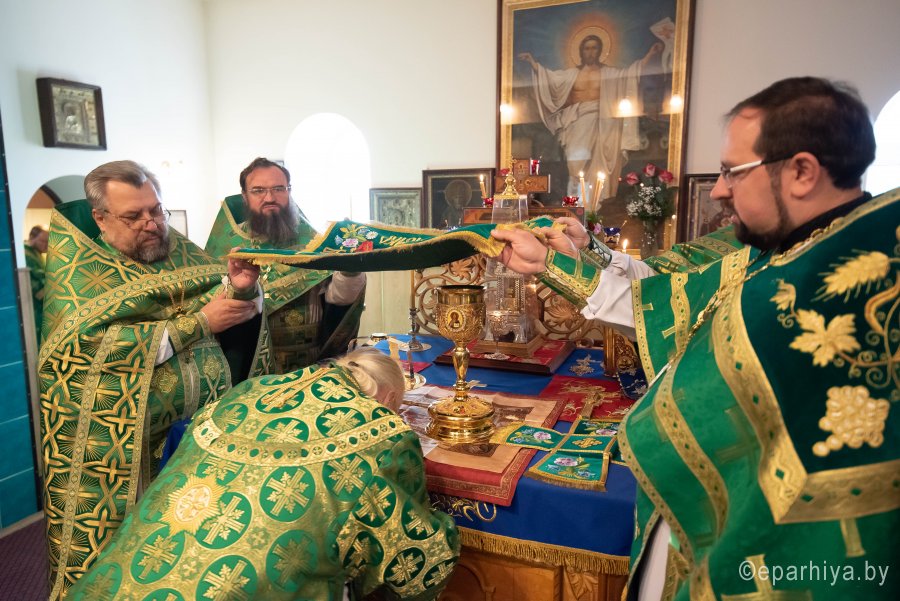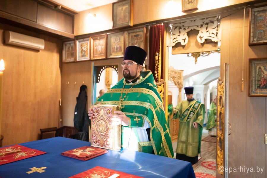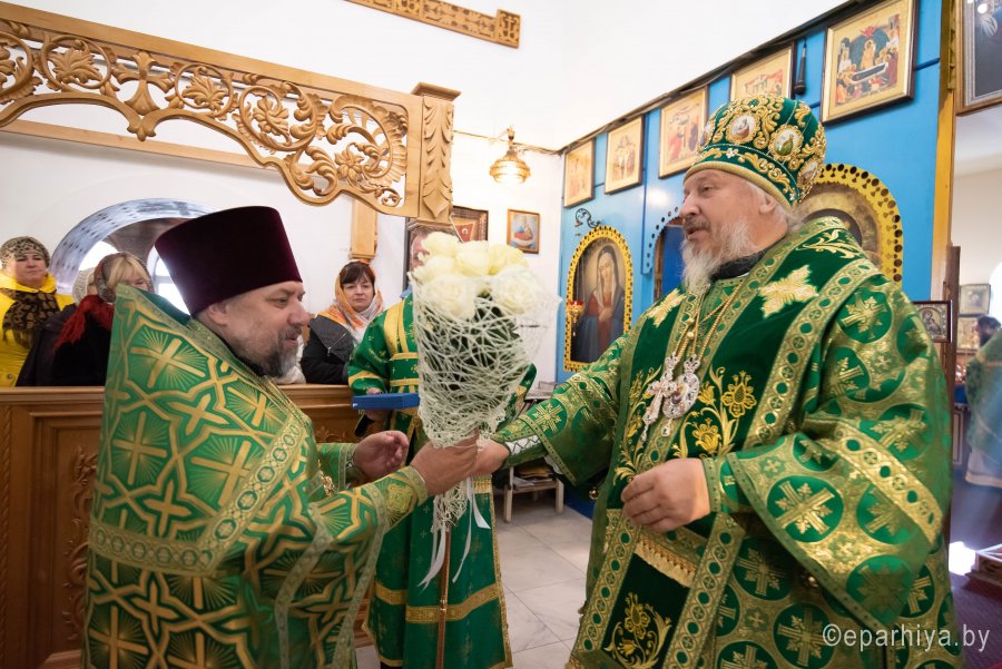 Божественную литургию во вторник 15-й седмицы по Пятидесятнице, в день памяти перенесения мощей прпп. Сергия и Германа Валаамских чудотворцев в храме преподобного Серафима Саровского в г. Гомеле 24 сентября 2019г. совершил Высокопреосвященный Стефан, архиепископ Гомельский и Жлобинский. Высокопреосвященному сослужили: благочинный Гомельского городского округа протоиерей Игорь Ольшанов, настоятель прихода протоиерей Сергий Леоньков и духовенство епархии. По окончании богослужения Владыка поздравил настоятеля прихода протоиерея Сергия Леонькова с Днем Ангела и на молитвенную память преподнес ему в дар наперсный крест и цветы. Высокопреосвященный Стефан поздравил причастников с принятием Святых Христовых Таин и обратился к молящимся со словами Архипастырского назидания. Так же во время своего визита Владыка ознакомился с ходом строительных работ на приходе. |