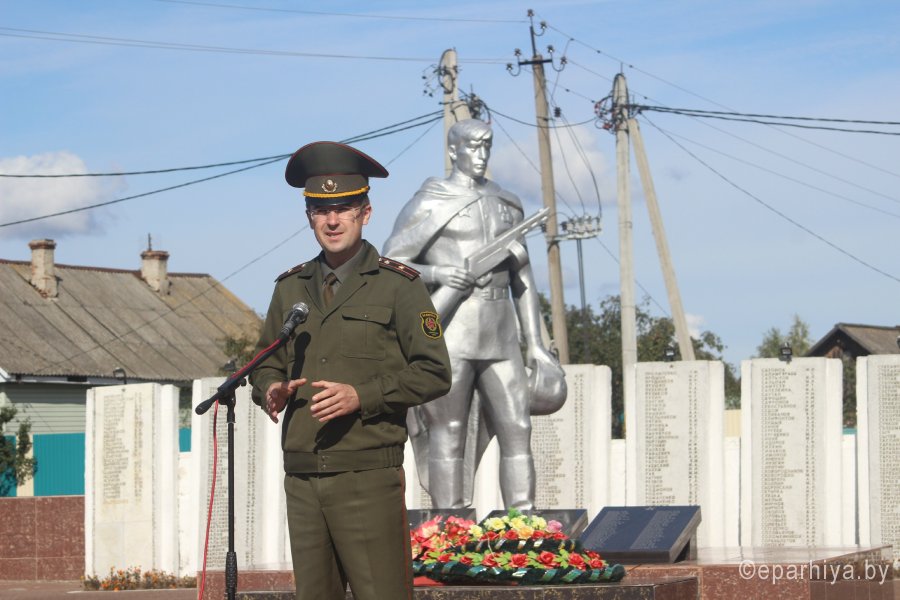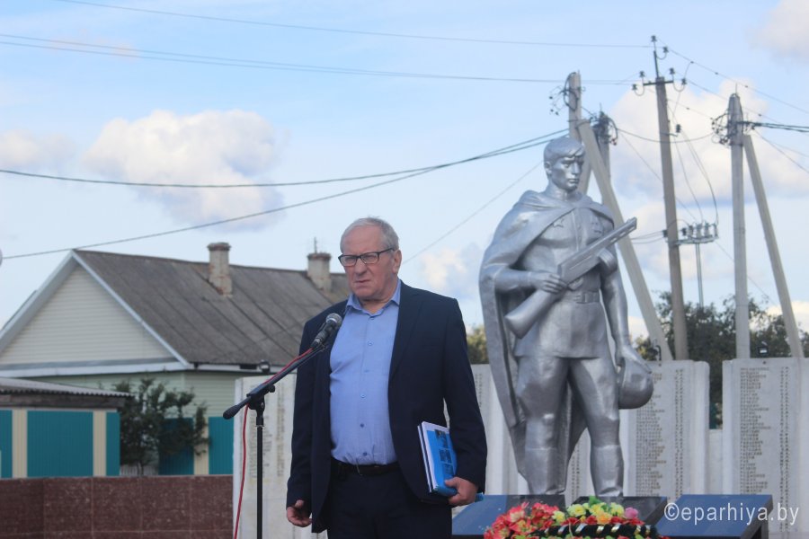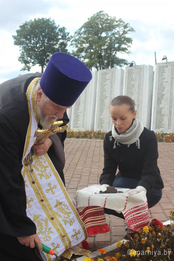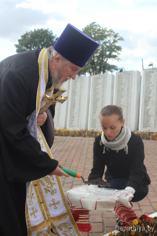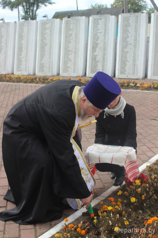 24 сентября настоятель прихода храма Преображения Господня в г. Ветке протоиерей Михаил Борисёнок принял участие в акции «Во славу общей Победы!», проводимой в рамках празднования 75-й годовщины освобождения Беларуси от немецко-фашистских захватчиков. Начиная с мая 2019 по май 2020 года подобные мероприятия по благоустройству воинских захоронений и акции по забору земли в капсулы с мест воинской славы и мест гибели мирного населения во время Второй мировой войны будут проходить в 118 районах нашей страны. К каждой из 118 капсул будет приложен список имён погибших, захороненных воинов или мирных граждан, а также информация о военных событиях местности, о вкладе местного населения в борьбе с немецкими захватчиками, о людях, отличившихся в боях или подпольном сопротивлении, о потерях и жертвах среди мирного населения. Затем капсулы с землёй будут переданы в населённые пункты, внёсшие наибольший вклад в освобождение Беларуси от немецких захватчиков. По окончании торжественно-памятных мероприятий в регионах, капсулы из обозначенных населённых пунктов будут доставлены в Минск для закладки в ниши крипты Храма-Памятника в честь Всех Святых. Цель проекта: сохранение исторической памяти о военных действиях Великой Отечественной войны и увековечению имён её участников, сражавшихся на белорусской земле и погибших за её свободу, а также увековечению имён соотечественников, погибших за пределами Беларуси. Перед церемонией взятия земли с места захоронения протоиерей Михаил с духовенством храма совершил чин заупокойной литии по погибшим воинам, спасению Отечества нашего послуживших, после чего вместе с собравшимися горожанами почтил память героев минутой молчания. |