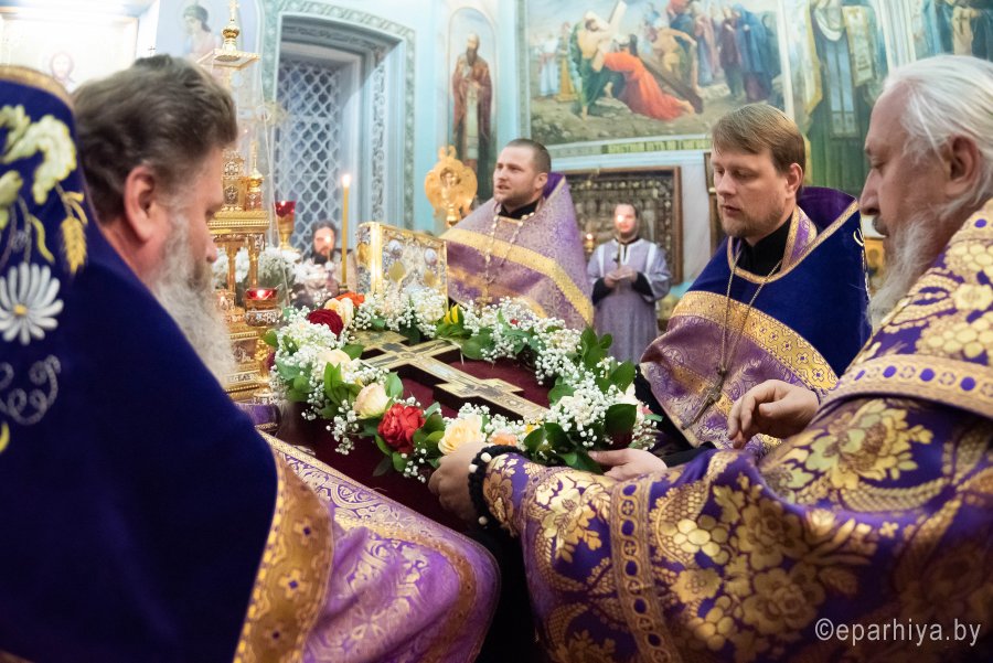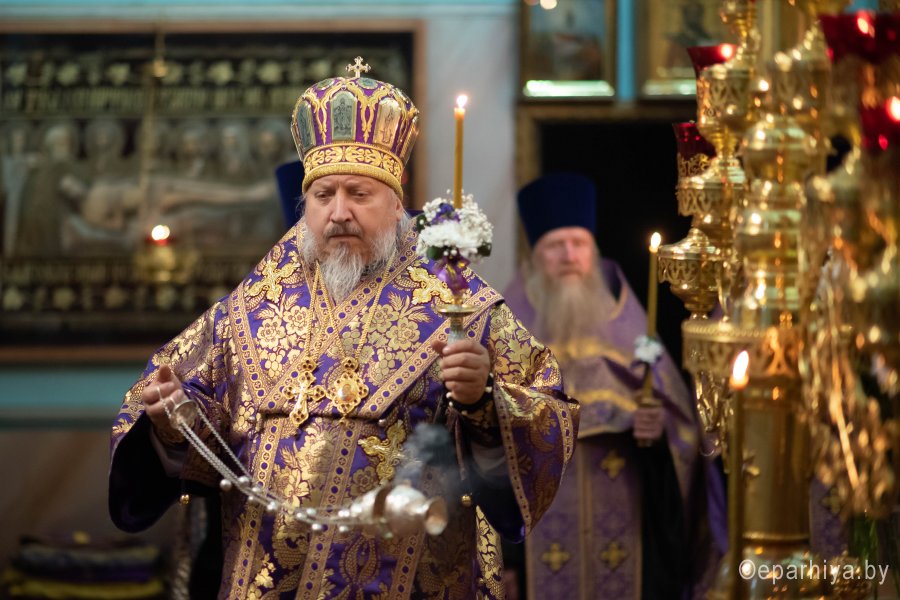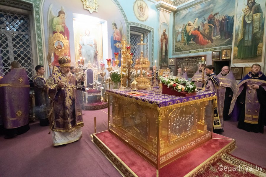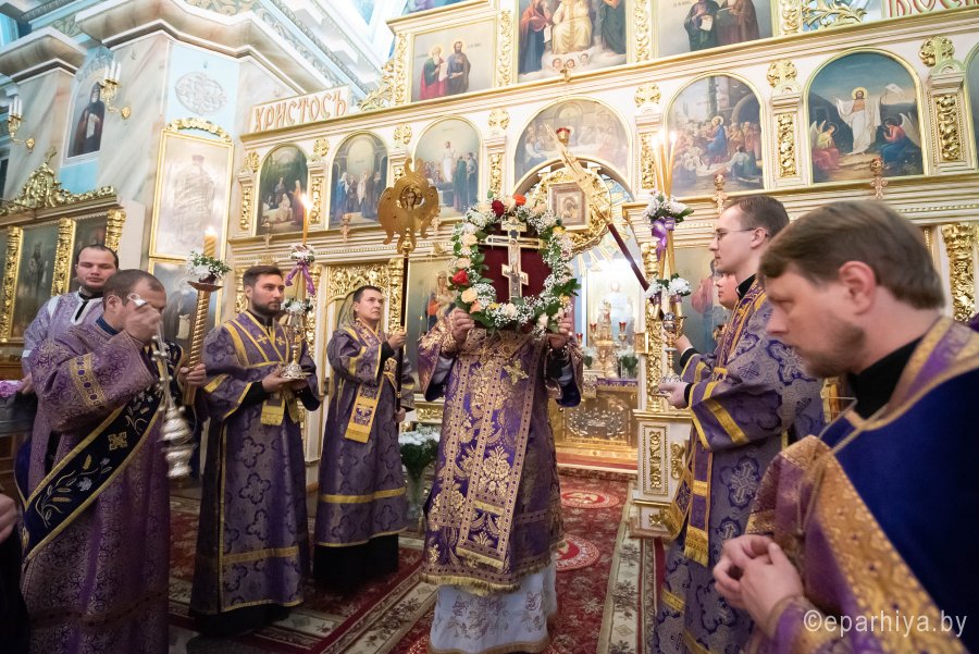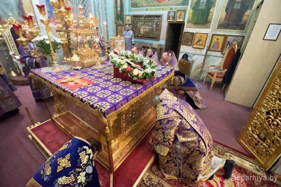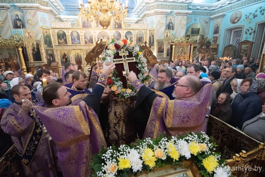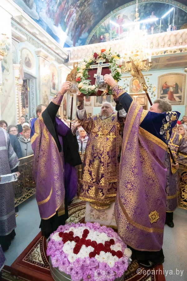 Всенощное бдение в канун праздника Воздвижения Честного и Животворящего Креста Господня в Петро-Павловском кафедральном соборе г. Гомеля 26 сентября 2019г. совершил Высокопреосвященный Стефан, архиепископ Гомельский и Жлобинский. Высокопреосвященному сослужили: секретарь Гомельской епархии протоиерей Георгий Алампиев и духовенство собора. После великого славословия Владыка совершил чин воздвижения Креста Господня. |