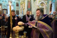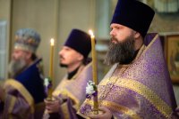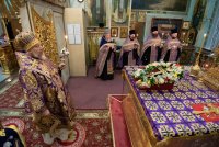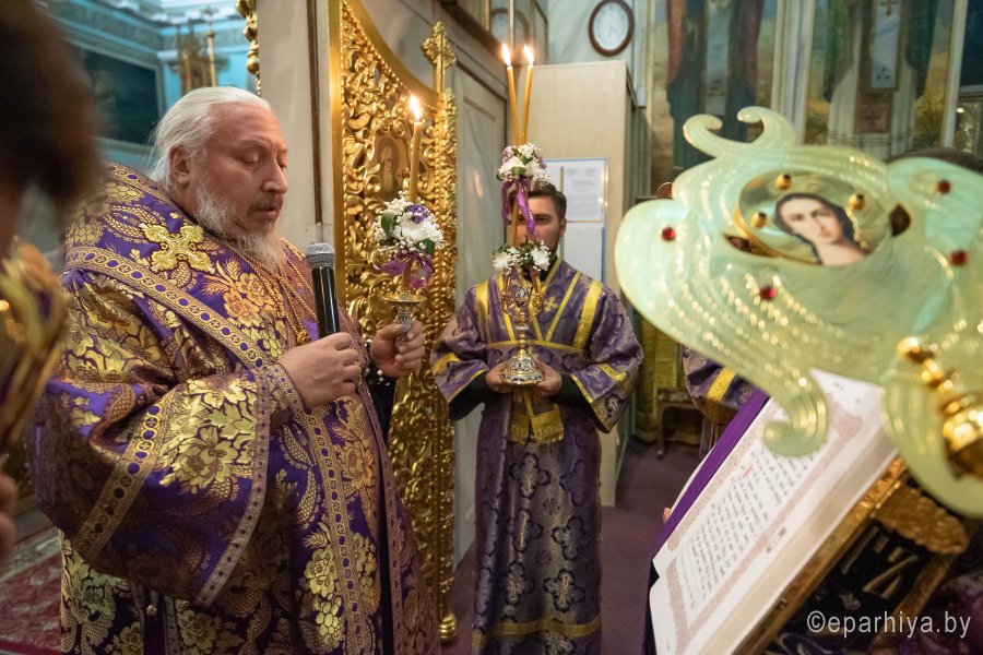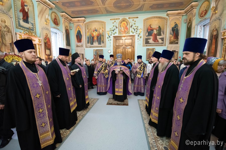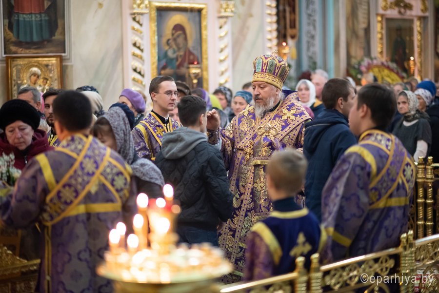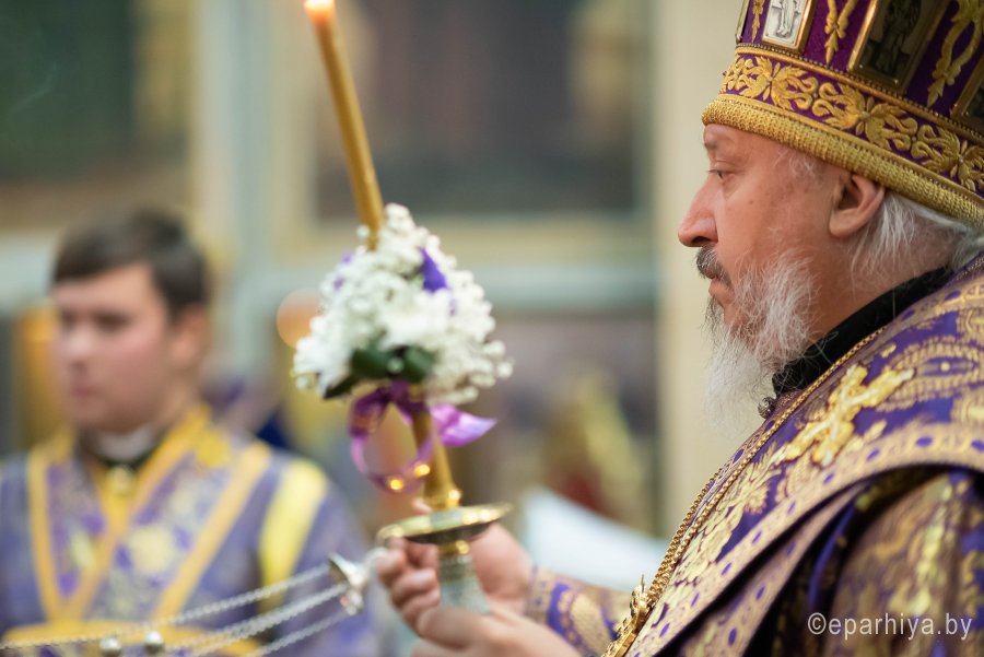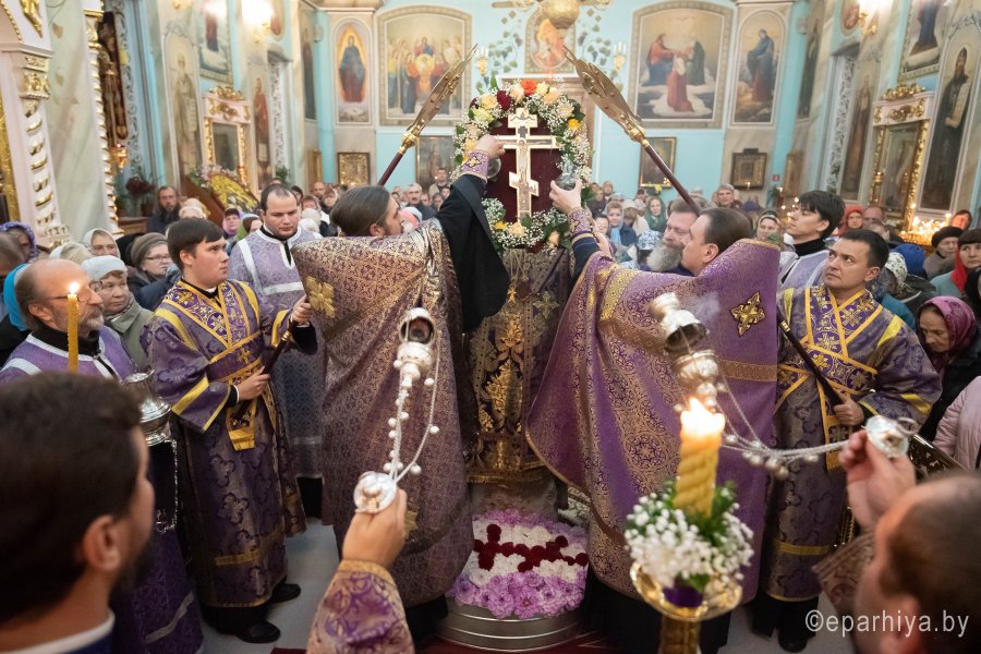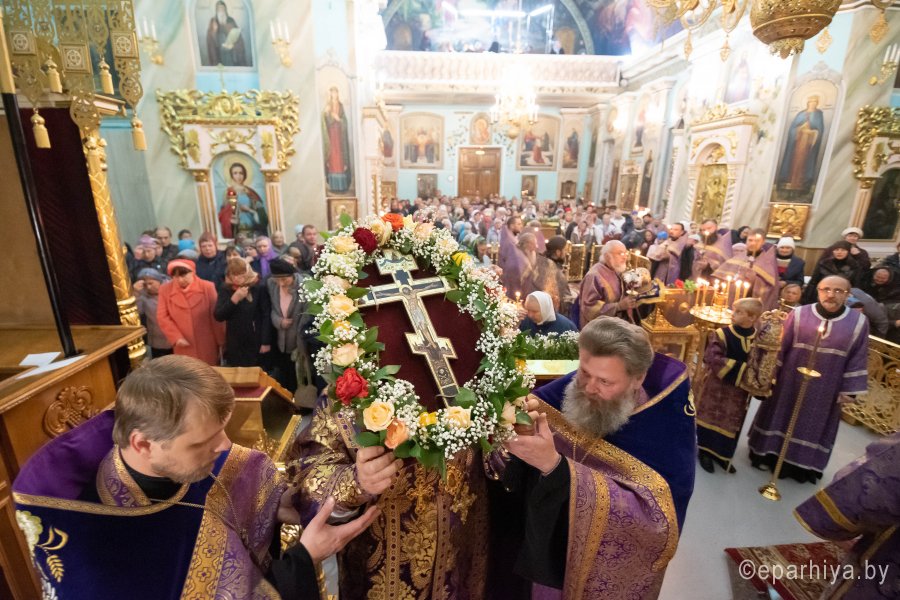 Всенощное бдение в канун праздника Воздвижения Честного и Животворящего Креста Господня в Петро-Павловском кафедральном соборе г. Гомеля 26 сентября 2019г. совершил Высокопреосвященный Стефан, архиепископ Гомельский и Жлобинский. Высокопреосвященному сослужили: секретарь Гомельской епархии протоиерей Георгий Алампиев и духовенство собора. После великого славословия Владыка совершил чин воздвижения Креста Господня. |
