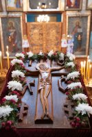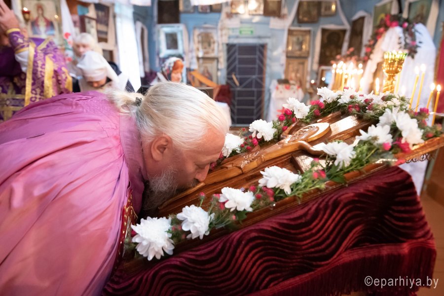 Божественную литургию в праздник Воздвижения Честного и Животворящего Креста Господня в храме Святой Живоначальной Троицы в д. Шарпиловка 27 сентября 2019г. совершил Высокопреосвященный Стефан, архиепископ Гомельский и Жлобинский. Высокопреосвященному сослужили: благочинный монастырей Гомельской епархии архимандрит Амвросий (Шевцов), избранный и нареченный епископом Светлогорским, викарием Гомельской епархии, секретарь Гомельской епархии протоиерей Георгий Алампиев, благочинный Гомельского районного округа протоиерей Артемий Кривицкий и духовенство епархии. По окончании богослужения Высокопреосвященнейший Стефан поздравил причастников с принятием Святых Христовых Таин, обратился к молящимся со словами Архипастырского назидания и на молитвенную память раздал всем присутствующим иконки «Спаси, Господи, люди Твоя и благослови достояние Твое, победы православным христианом на сопротивные даруя, и Твое сохраняя Крестом Твоим жительство» - звучали сегодня слова тропаря. Воздвижения Честного и Животворящего Креста Господня – двунадесятый праздник, который установлен в память обретения Честного и Животворящего Креста Господня (в 326 году) равноапостольною царицею Еленою, матерью первого христианского императора Константина Великого, а с VII века с этим днем стало соединяться воспоминание о возвращении Животворящего Креста из Персии греческим императором Ираклием (в 620-е годы). Как при обретении, так и при поставлении Креста, возвращенного из Персии, патриарх, дабы дать возможность всем собравшимся на торжество видеть святыню, воздвигал, то есть поднимал, Крест, обращая его ко всем четырем сторонам. От этого поднятия Креста и праздник получил название: Воздвижение Креста Господня. |