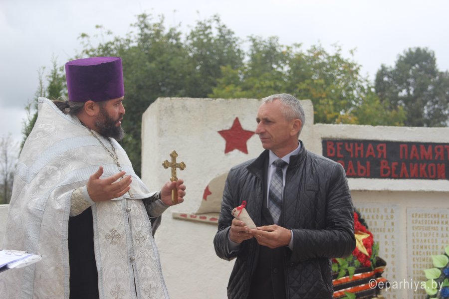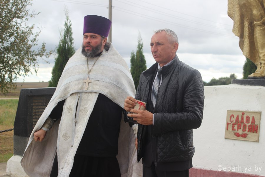 Земля с Родины — святыня. Родная земля, обагрённая кровью павших, — вдвойне. Она символический прах… Инициированная Беларусью международная акция «Во славу общей Победы!» призвана создать новую культуру памяти о Великой Отечественной войне. Мы входим в новую эпоху, в которой все меньше остаётся живых очевидцев тех страшных событий. Единственным свидетелем остаётся земля с памятных мест войны, с мест гибели воинов и мирных жителей. Пока время не стёрло события и даты, эта земля будет собрана для вечной молитвенной памяти в Минске в крипте Храма-Памятника в честь Всех Святых и в память о жертвах, спасению Отечества нашего послуживших. С каждого памятного места, места захоронения погибших в Беларуси героев будет собрана земля с обозначением географии места забора. Как планируется, кульминацией акции станет торжественная церемония закладки более 100 капсул с землёй со всей Республики Беларусь 9 мая 2020 года, в день празднования 75-летия Великой Победы. Таким образом, символически будут воссоединены те, кто сражался плечом к плечу, добывая общую для всех Победу на полях сражений Великой Отечественной войны. К этой акции присоединилась и Ветковщина. С 19 по 27 сентября митинги торжественного забора земли проходят в Ветке, Новосёлках, Шерстине, Даниловичах, Светиловичах, Присно, Неглюбке, Старом Селе и Хальче. В агрогородке Даниловичи на братской могиле митинг-реквием, посвящённый торжественному забору земли, прошёл 19 сентября, в агрогородке Радуга — 20 сентября. Открывая митинг, председатель Даниловичского сельисполкома Владимир Шапоров напомнил односельчанам о трагических событиях, которые разворачивались в то страшное время. Погибшие в годы Великой Отечественной войны герои были похоронены в одиночных могилах посёлков Первомайский, Новины, Будёновский, Васильевский. В 1951-1953 годах они были перезахоронены в братскую могилу села Даниловичи. Белорусы, россияне, украинцы — 28 бойцов в званиях от рядового до генерала — обрели покой на Даниловичской земле. Пиковой точкой мероприятия стал забор горсти земли с братской могилы. Участники акции минутой молчания почтили память погибших и возложили к памятнику цветы, вместе с настоятелем храма Святителя Николая Чудотворца в аг.Даниловичи протоиереем Андреем Булацким пропели вечную память павшим воинам за веру и Отечество живот свой положившим. У братской могилы в агрогородке Хальч участниками республиканской акции «Во славу общей Победы!» стали учащиеся и учителя Хальчанской базовой школы, свидетель военных действий, житель деревни Хальч Иван Адамович Юшкин, а также все те, для кого важно сохранить память о Великой Победе и подвиге наших земляков. О трагедии, которая в ноябре 1943 года разыгралась в деревне Хальч, рассказали участникам митинга свидетель той войны Иван Адамович и учитель истории Елена Александровна Литвинова. «Мне было 11 лет, когда я увидел войну. Над родной деревней заполыхал огонь, прервалась счастливая мирная жизнь… Немецкие оккупанты страшно бомбили деревню, на каждом шагу взрывались снаряды. Особенно горячие бои шли в районе церкви и сада. Много было убитых, много раненых… Помню, как пулемётная очередь простучала и над моей головой. Я с друзьями помогал солдатам, мы таскали раненых, тела убитых. И даже слово «страшно» не то слово, чтобы всё передать…», – расска