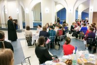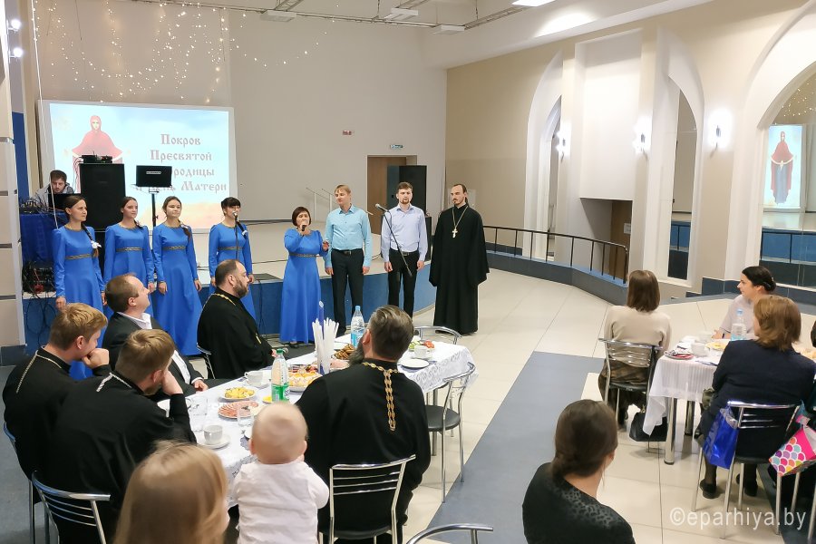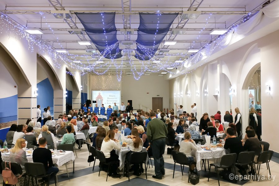 Традиционное ежегодное поздравительное мероприятие для жен священнослужителей, посвященное одним из самых почитаемых в народе праздникам – Покрову Пресвятой Богородицы и Дню Матери, состоялось 6 октября 2019 г. в Гомельском городском центре культуры по благословению Высокопреосвященного Стефана архиепископа Гомельского и Жлобинского. По давней традиции жен священнослужителей называют мягким и ласковым словом «матушка». Они не только жёны, хозяйки дома и хранительницы очага, но и часто многодетные матери, воспитательницы, помощницы священника, благотворительницы и общественные деятели. Торжественное мероприятие открыл приветствием и словами поздравления председатель отдела по работе с молодежью Гомельской епархии иерей Дмитрий Мельников. Он отметил, нелегкий труд матушки, что именно она занимается хранением домашнего очага, окружает семью заботой, оберегает ее, именно от ее поддержки зависит то, какой будет атмосфера в доме, а когда в доме все хорошо, то и священник с двойными силами трудиться на приходе. В праздничной программе приняли участие приходские хоры, инструментальные коллективы, солисты и ансамбли г. Гомеля и г. Буда-кошелево, а также свои поздравительные номера присутствующим подарили дети священнослужителей. Не остались без внимания и дети, пришедшие со своими матерями, для них была организована развлекательно-игровая программа с клоунами, мыльными пузырями, «блестящим» шоу, конкурсами и подарками. В заключении на память о празднике матушки получили подарки. «Матушка!» – это не просто обращение, это призвание, которое все Вы несете с достоинством. Позвольте еще раз поздравить Вас с этими замечательными и поистине светлыми предстоящими праздниками Покрова Пресвятой Богородицы, и Днем Матери. Низкий Вам поклон! |