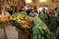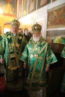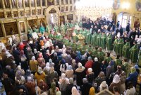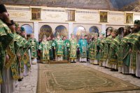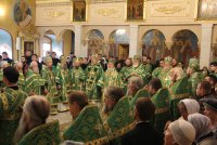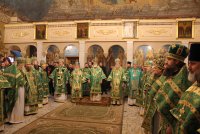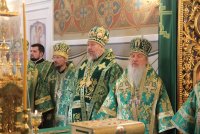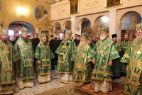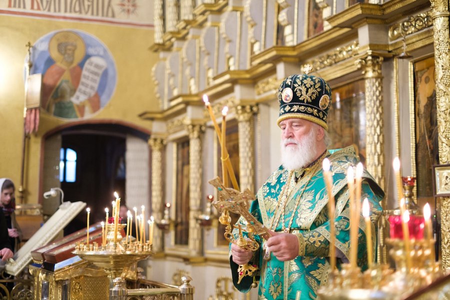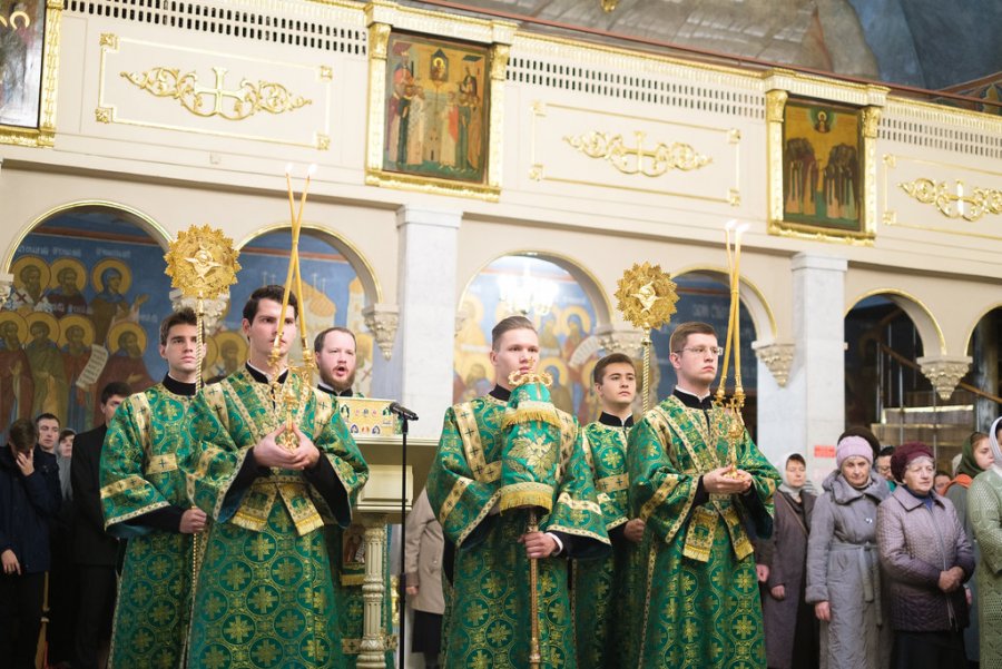 8 октября, в день преставления преподобного Сергия Радонежского, чудотворца, Игумена земли Русской, в храмах Московской духовной академии прошли праздничные богослужения. Праздничную Божественную литургию в Покровском академическом храме Московской духовной академии совершил митрополит Минский и Заславский Павел, Патриарший экзарх всея Беларуси. Ему сослужили: митрополит Тобольский и Тюменский Димитрий, архиепископ Ивано-Франковский и Коломыйский Серафим, архиепископ Гомельский и Жлобинский Стефан, архиепископ Подольский Тихон, епископ Борисовский и Марьиногорский Вениамин, епископ Орский и Гайский Ириней, епископ Звенигородский Питирим, ректор МДА, епископ Бежецкий и Весьегонский Филарет, епископ Скопинский и Шацкий Феодорит, архимандриты Венедикт (Князев), Платон (Игумнов), Иларион (Форкавец), Лука (Головков), игумены Герасим (Дьячков), Мелетий (Соколов), протоиереи Сергий Жиров, Сергий Забелич, иеромонахи Варнава (Лосев), Аполлинарий (Панин), Вячеслав (Сорокин), Феодор (Юлаев), Дометиан (Курланов), Варлаам (Череп), Кассиан (Плоский), а также гости, преподаватели и студенты в священном сане. Диаконский чин возглавил диакон Димитрий Маслов. Песнопения за праздничным богослужением исполнил первый академический хор, регент – Марк Качанкин. На сугубой ектении молящиеся вознесли молитвы о мире на земле Украинской, о единстве Святой Православной Церкви и сохранении Ее от разделений и расколов. По запричастном стихе с проповедью, посвященной празднику, обратился иеромонах Аполлинарий (Панин). По заамвонной молитве архиереи, духовенство и молящиеся прославили Радонежского чудотворца. После богослужения митрополит Павел поздравил сомолитвенников с праздником и обратился с архипастырским словом, поздравил именинников с днем ангела и возгласил для них многолетие. После Литургии Высокопреосвященный Стефан молитвенно почтил память сокурсников, погибших при пожаре в Московской духовной академии в 1986г. и возложил цветы к их могиле. По материалам сайта mpda.ru |