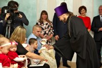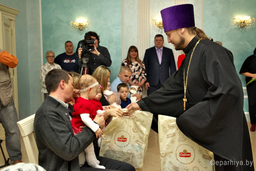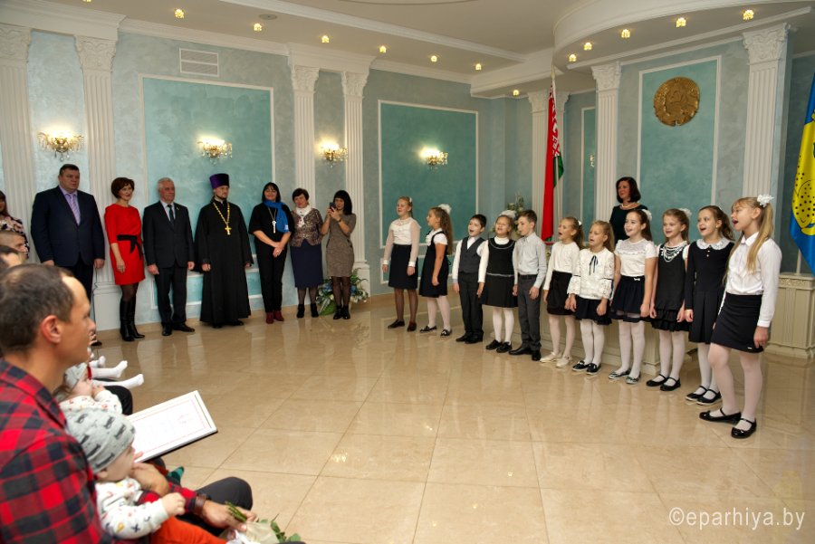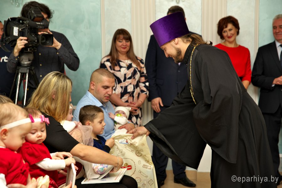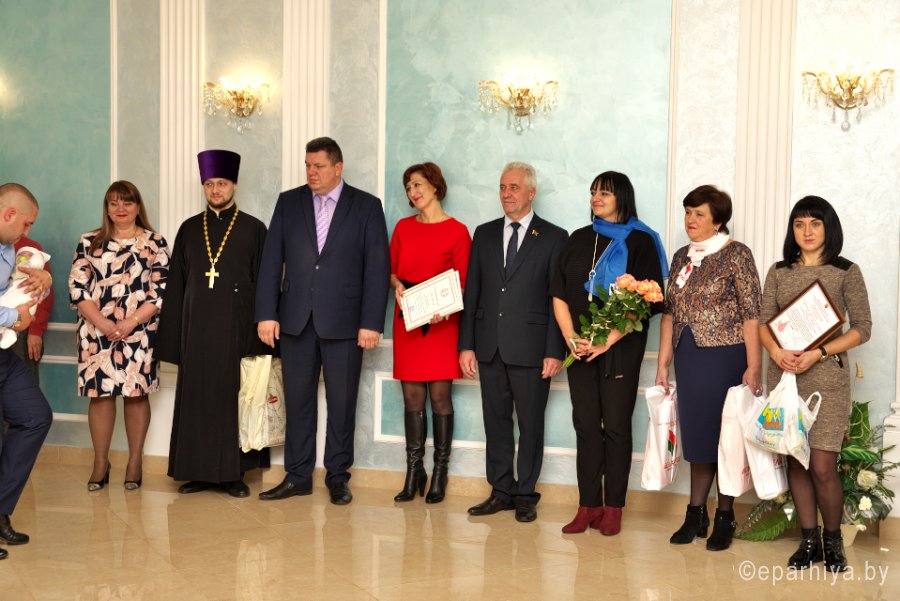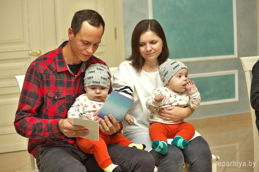 В преддверии праздника Покрова Пресвятой Богородицы и Дня Матери 12 октября 2019 г. в отделе ЗАГС администрации Новобелицкого района состоялась торжественная регистрация рождения близнецов, родившихся в Новобелицком районе в 2019 году. За этот период семьи Улитиных, Слесаренко, и Демьянцевых обрели двойное счастье: одна двойня – девочки, одна двойня – мальчики и одна двойня – мальчик, девочка. Семьи были приглашены для торжественного вручения главного документа – свидетельства о рождении детей. Новорожденных поздравили клирик прихода храма св. блгв. кн. Александра Невского в г. Гомеле иерей Виталий Партий, депутаты Гомельского городского Совета депутатов, Новобелицкая общественная организация «Белорусский союз женщин», «БРСМ» и «Белая Русь». Музыкальный подарок прозвучал от вокального ансамбля «Аллегро» ГУО «Гомельская Ирининская гимназия» под управлением Вероники Цуриковой. С наступающим праздником Покрова Пресвятой Богородицы и Днем матери всех присутствующих поздравил иерей Виталий Партий. Всем матерям священник пожелал душевных и телесных сил, крепости, радости о детях и покровительства Божией Матери |