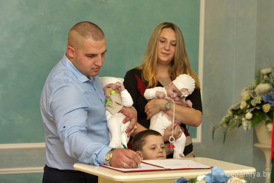 Торжественная регистрация рождения близнецов в отделе ЗАГС администрации Новобелицкого района г.Гомеля.