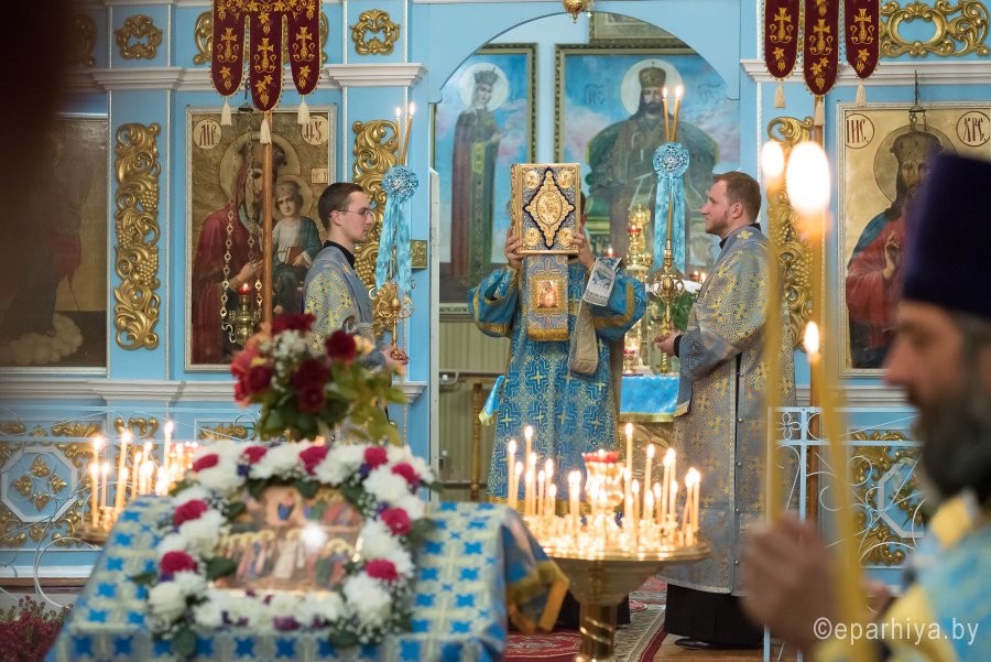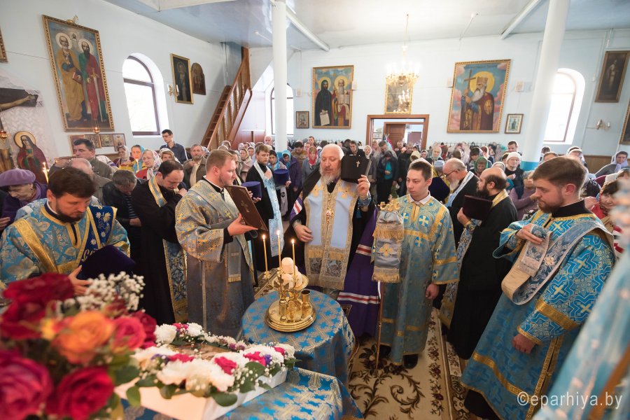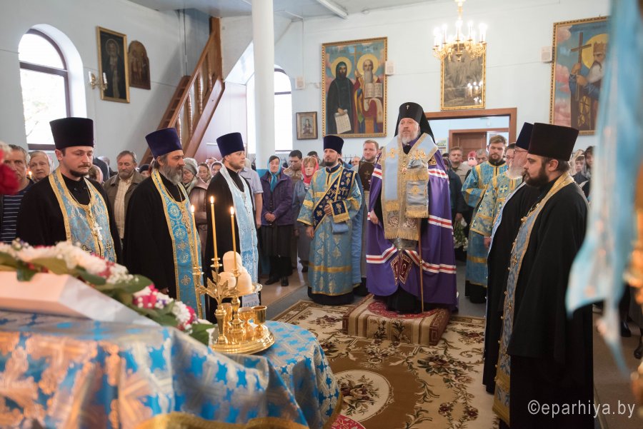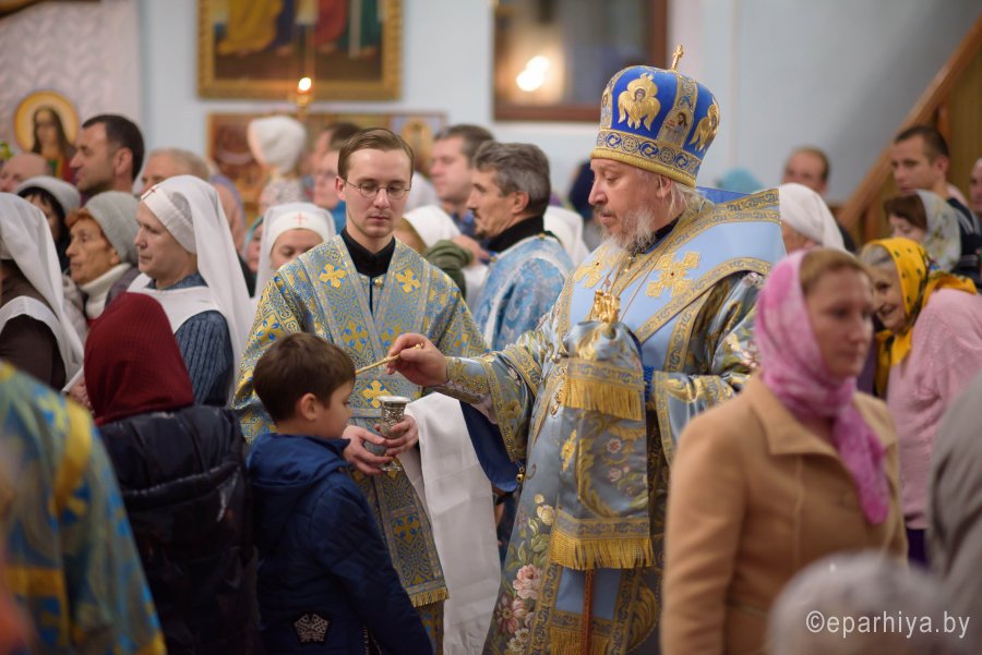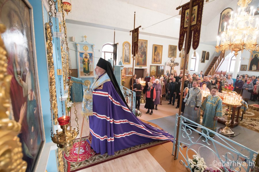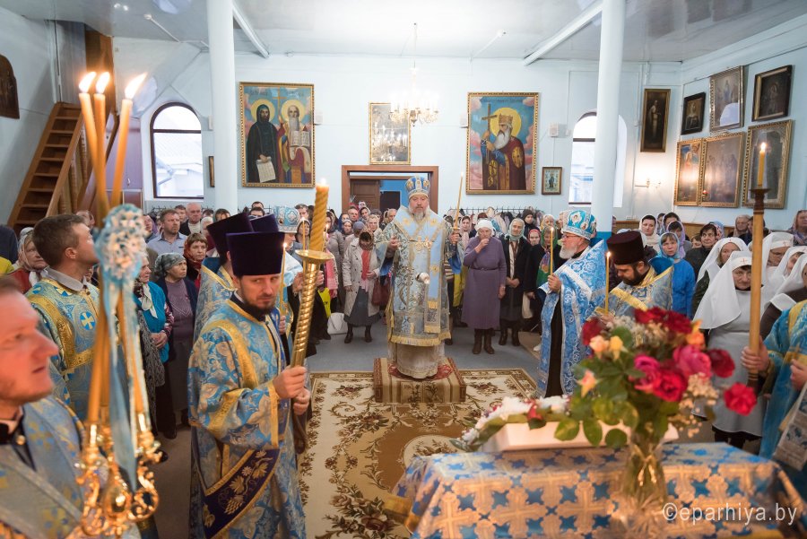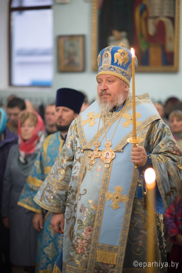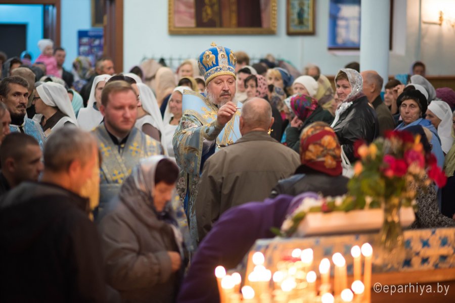Всенощное бдение в канун праздника Покрова Пресвятой Богородицы 13 октября 2019г. в одноименном храме г.Речицы совершил Высокопреосвященнейший Стефан, архиепископ Гомельский и Жлобинский. Высокопреосвященному сослужили: секретарь Гомельской епархии протоиерей Георгий Алампиев, благочинный Речицкого округа протоиерей Алексей Пешко, настоятель прихода и духовенство округа. |