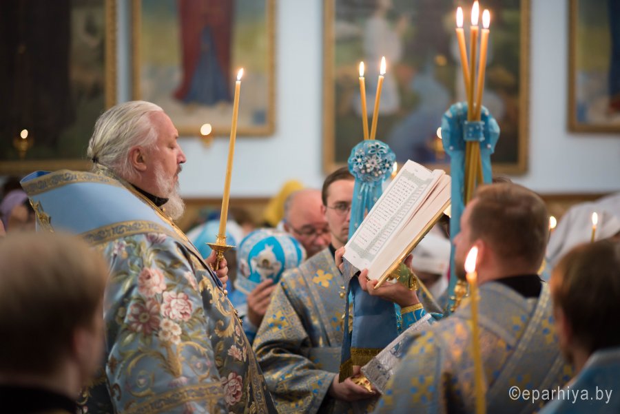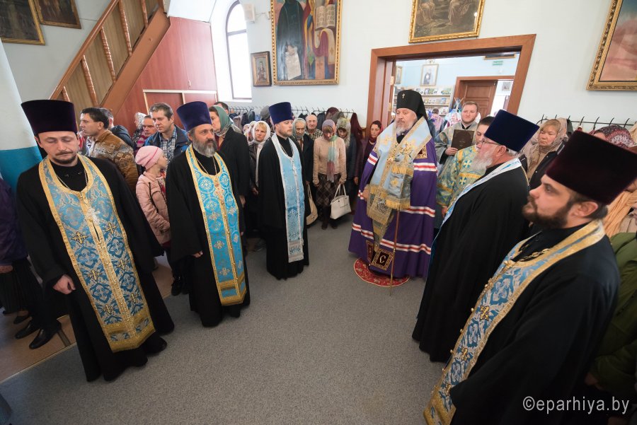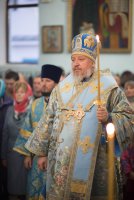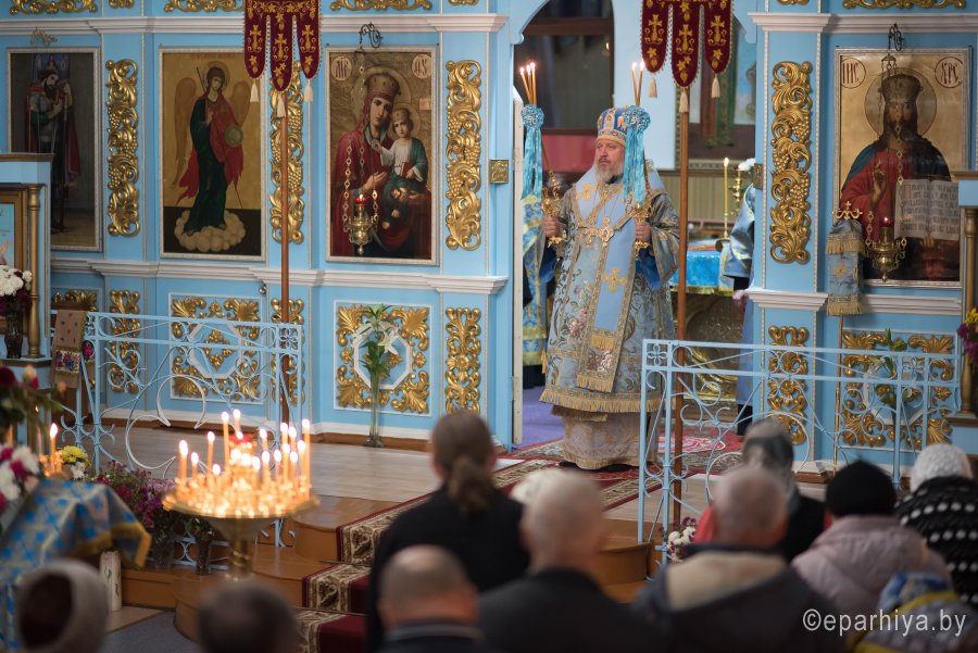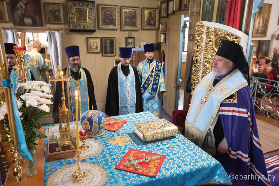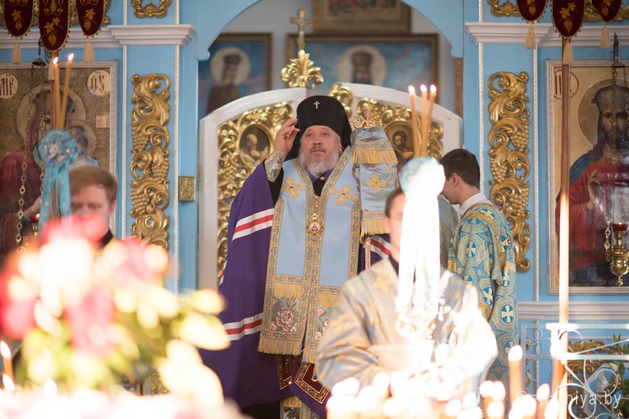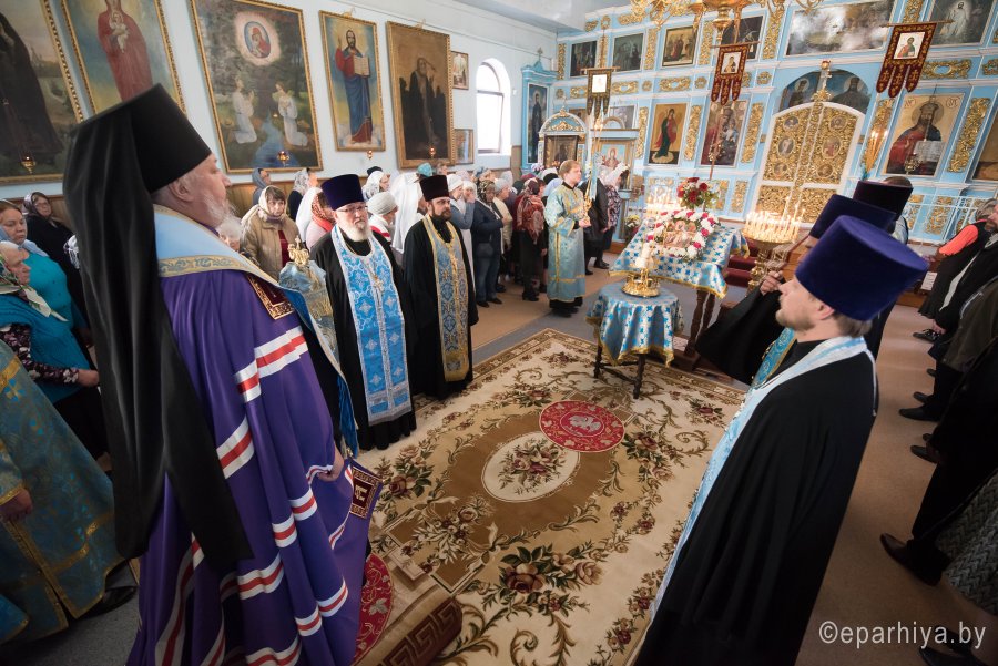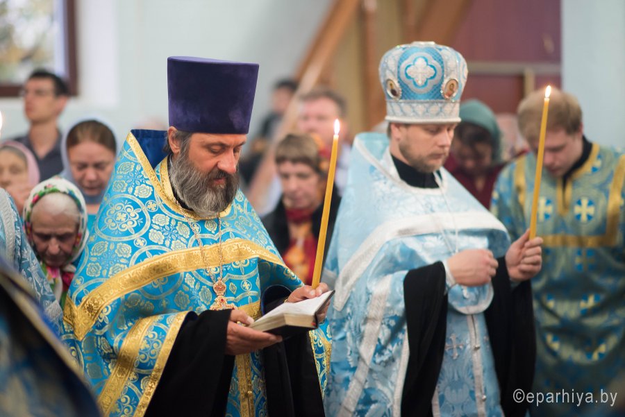 Всенощное бдение в канун праздника Покрова Пресвятой Богородицы 13 октября 2019г. в одноименном храме г.Речицы совершил Высокопреосвященнейший Стефан, архиепископ Гомельский и Жлобинский. Высокопреосвященному сослужили: секретарь Гомельской епархии протоиерей Георгий Алампиев, благочинный Речицкого округа протоиерей Алексей Пешко, настоятель прихода и духовенство округа. |