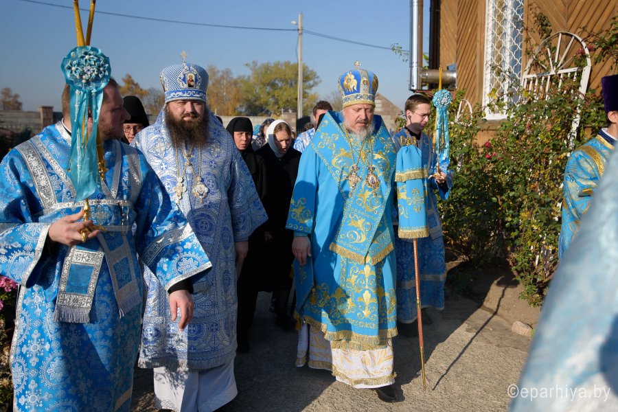 Божественную литургию в праздник иконы Божией Матери «Казимировская» 16 октября 2019г. возглавил Высокопреосвященнейший Стефан, архиепископ Гомельский и Жлобинский. Высокопреосвященнейшему сослужили: викарий Гомельской епархии епископ Светлогорский Амвросий, благочинный Жлобинского округа протоиерей Василий Пилипенко и духовенство епархии. За Божественной литургией молились игумения Иоанна (Ярец) с сестрами Успенского женского монастыря д. Казимирово и старшая сестра Иоанно-Кормянского монастыря монахиня Архелая (Новикова) с сестрами. По окончании Литургии Владыка Стефан возглавил крестный ход, поздравил причастников с принятием Святых Христовых Таин, обратился к молящимся со словами Архипастырского назидания. В память об общей молитве присутствующие получили иконки. Икона Божией Матери "Казимировская" известна с 1713 г., когда речицкий подкоморий Казимир Юдицкий основал монастырь в честь чудотворной иконы, доставшейся ему от предков. Вскоре вблизи монастыря возникло местечко, получившее название Казимирово. Где-то в 1880-х гг. здесь была построена Свято-Успенская церковь. В ней эта икона и находилась. Там же хранилась книжка с описанием чудес от иконы с 1720 по 1764 год, ныне затерянная. В 1812 г. монастырские строения были разрушены войсками Наполеона. В 1839 г. монастырь был закрыт, церковь стала приходской. В 1933-м году закрыли и храм, разобрали на бревна и построили школу. Икона исчезла, но была обретена в 2000-м году. |