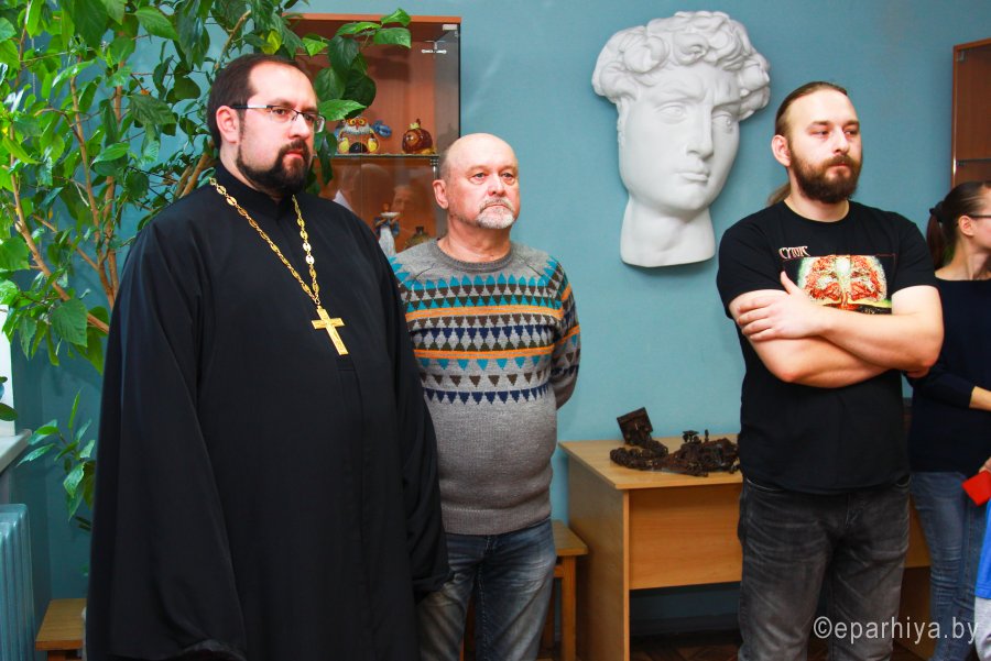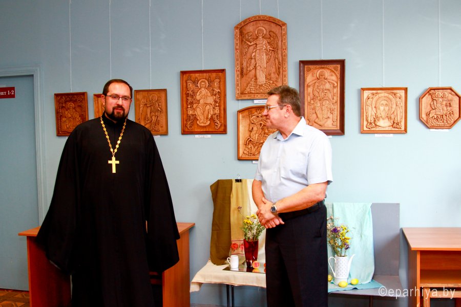17 октября 2019 года в ГУО «Детская художественная школа искусств г. Гомеля» состоялось открытие выставки гомельского художника Владимира Куклина. На открытии выставки присутствовали благочинный церквей Гомельского городского округа протоиерей Игорь Ольшанов, коллеги художника, ученики школы. В экспозицию, представленную в школе, вошли авторские работы, выполненные в технике резьбы по дереву на тему библейских сюжетов, а также иконы, на создание которых мастер получил благословение архиепископа Гомельского и Жлобинского Стефана. |