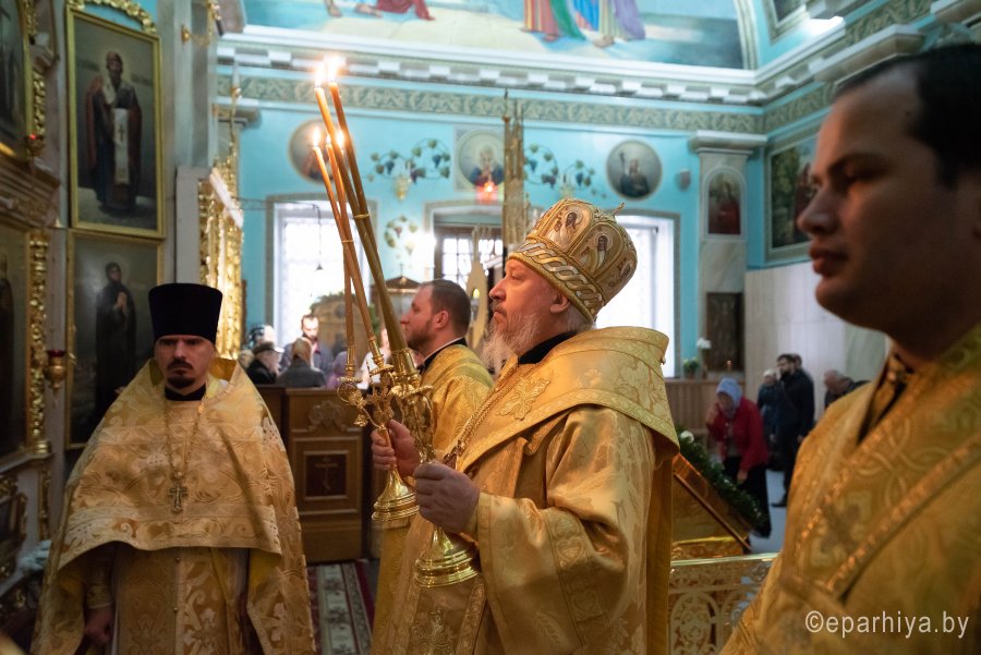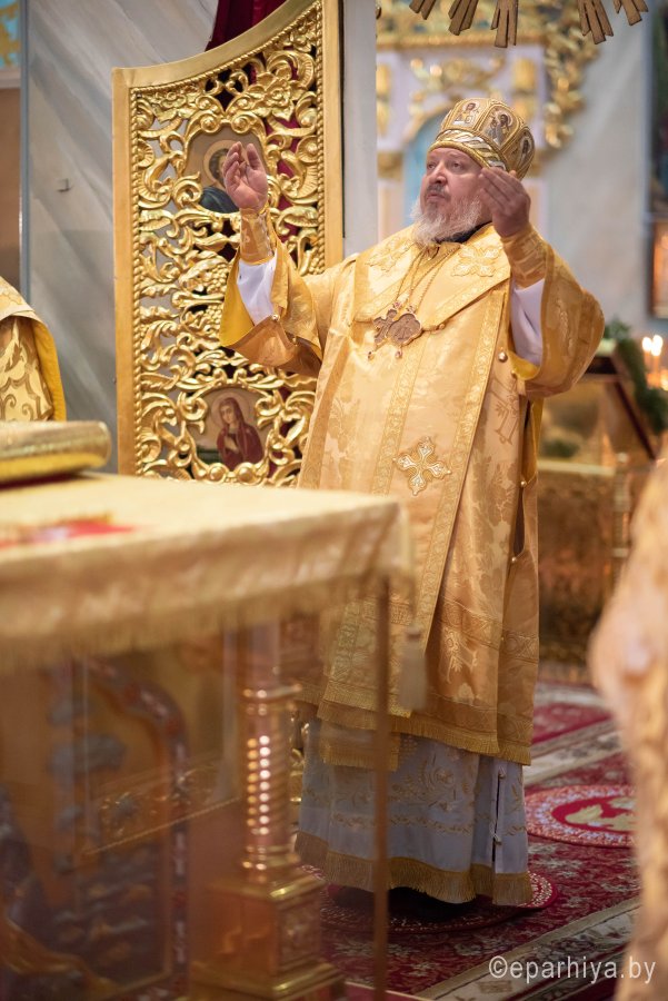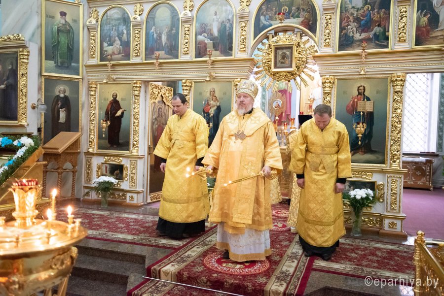 Божественную литургию в Петро-Павловском кафедральном соборе г.Гомеля 19 октября 2019г. в субботу седмицы 18-й по Пятидесятнице совершил Высокопреосвященнейший Стефан архиепископ Гомельский и Жлобинский. Высокопреосвященнейшему сослужило духовенство собора. По окончании Литургии Владыка Стефан поздравил причастников с принятием Святых Христовых Таин и обратился к молящимся со словами Архипастырского назидания. |