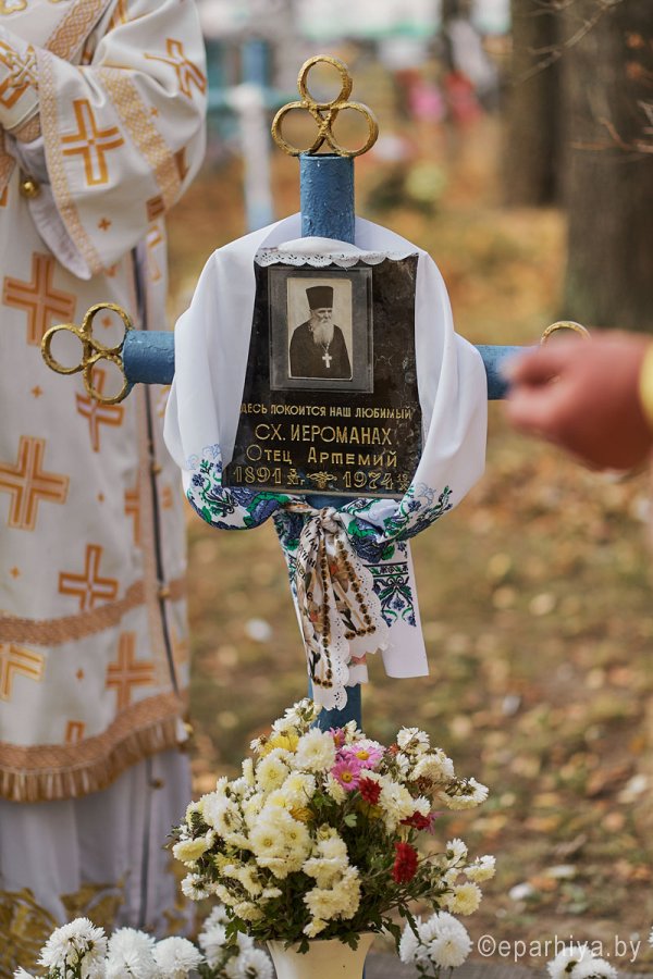 19 октября 2019 года, 45 лет назад, почил по Бозе схииеромонах Артемий (Потоцкий) (+1974). Новомученик и сподвижник ХХ века похоронен на старокривском кладбище, которое расположено возле церкви святителя Николая Чудотворца. В этом сельском храме по благословению Высокопреосвященного Стефана, архиепископа Гомельского и Жлобинского, викарный архиерей, епископ Светлогорский Амвросий в сослужении благочинного Рогачевского округа протоиерея Алексия Смотрицкого и духовенства благочиния возглавил заупокойную Божественную литургию в память об о. Артемие. По окончании Литургии владыка Амвросий совершил панихиду на могиле схииеромонаха. Всем собравшимся совершить память воина Христова Его Преосвященство раздал в благословение иконки. Возвращаясь в Гомель, епископ Амвросий посетил сельские кладбища в д. Хизов и д. Берестовец Кормянского района. На могиле владыки Глеба (Савина), похороненном на хизовском погосте, епископ Амвросий совершил литию. Помянул владыка усопших сродников и на берестовецком кладбище. Автор Елена Силивончик Фото Кирилла САСЫКБАЕВА |