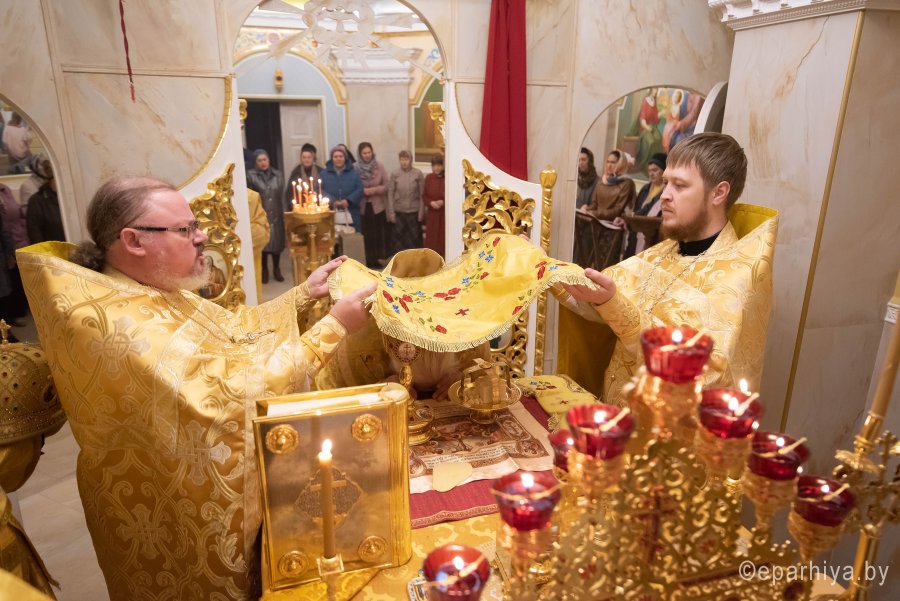 Божественную литургию во вторник 19-й седмицы по Пятидесятнице 22 октября 2019г. Высокопреосвященнейший Стефан, архиепископ Гомельский и Жлобинский в сослужении духовенства собора совершил в крестильном храме Петро-Павловского кафедрального собора г.Гомеля. По окончании богослужения Владыка Стефан поздравил причастников с принятием Святых Христовых Таин и обратился к молящимся со словами Архипастырского назидания. |