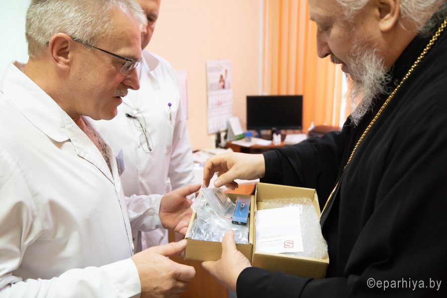 Высокопреосвященнейший Стефан, архиепископ Гомельский и Жлобинский 23 октября 2019г. посетил Гомельскую областную специализированную клиническую больницу, где пообщался с персоналом и от имени семейной пары Натальи и Харальда Зиферт, представляющими благотворительную организацию «Помощь Оденвальда детям Чернобыля», передал персоналу медучреждения медицинские инструменты для поведения сложных офтальмологических операций. |
