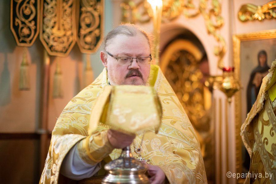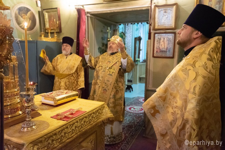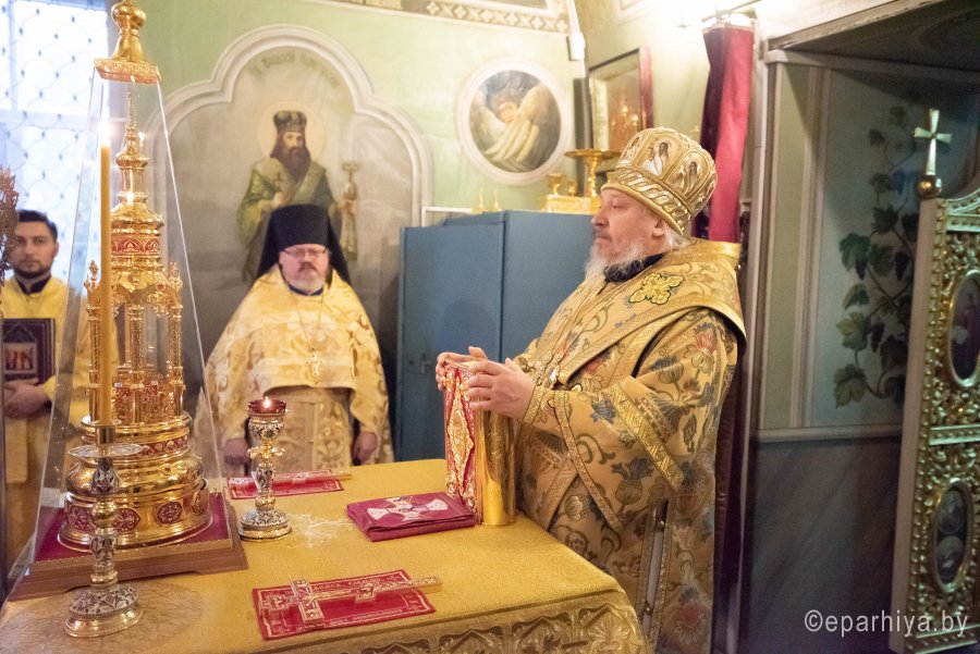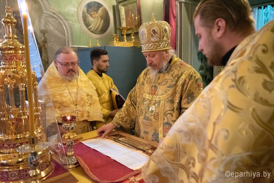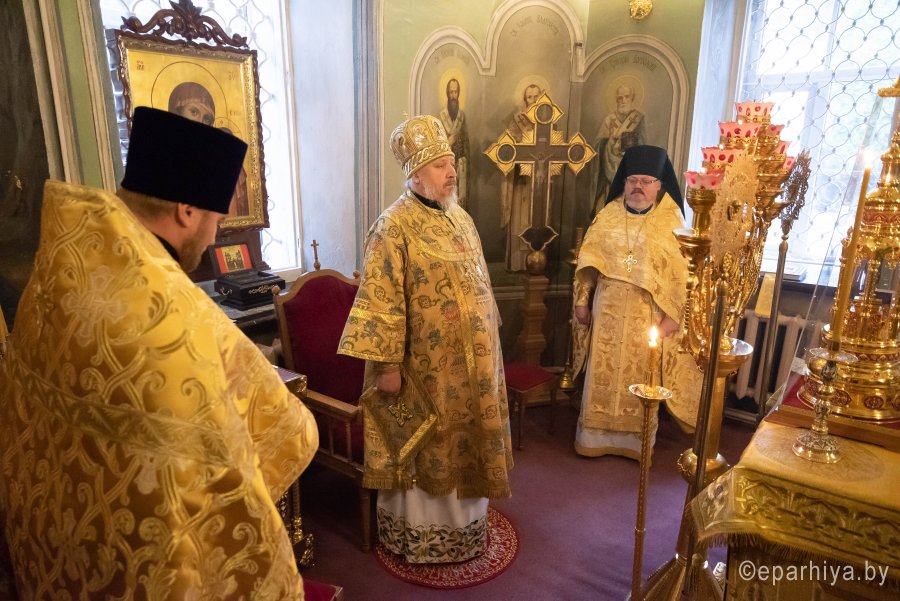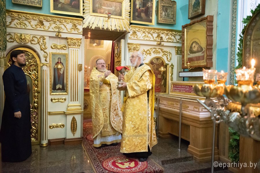 Божественную литургию в Казанском пределе Петро-Павловского кафедрального собора г.Гомеля 24 октября 2019г. в четверг 19-й седмицы по Пятидесятнице совершил Высокопреосвященнейший Стефан архиепископ Гомельский и Жлобинский в сослужении духовенства собора. По окончании Литургии Владыка Стефан поздравил причастников с принятием Святых Христовых Таин и обратился к молящимся со словами Архипастырского назидания. |