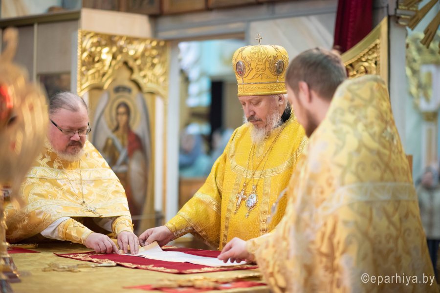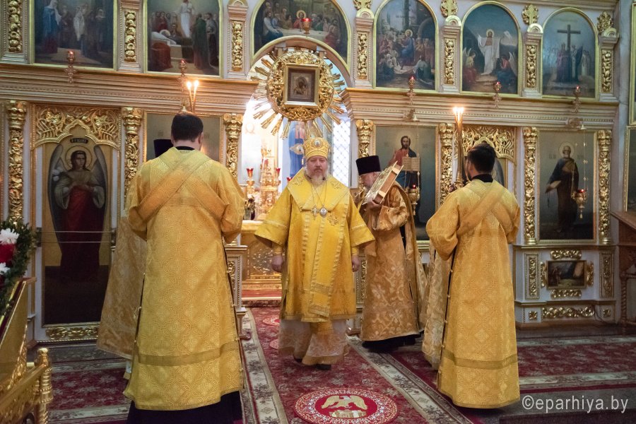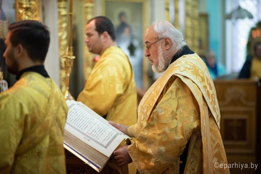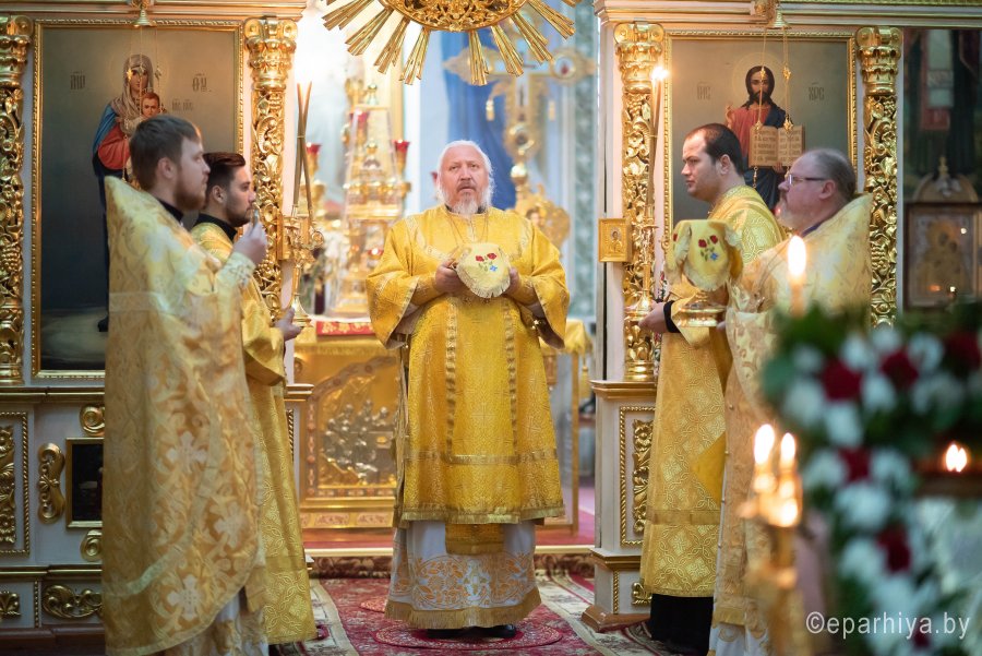 Божественную литургию в Петро-Павловском кафедральном соборе г.Гомеля 25 октября 2019г. в пятницу 19-й седмицы по Пятидесятнице совершил Высокопреосвященнейший Стефан архиепископ Гомельский и Жлобинский в сослужении духовенства собора. По окончании Литургии Владыка Стефан поздравил причастников с принятием Святых Христовых Таин и обратился к молящимся со словами Архипастырского назидания. |