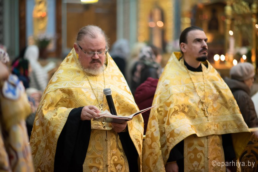 Вечернее богослужение с чтением акафиста на распев в Петро-Павловском кафедральном соборе г.Гомеля 27 октября 2019г. совершил Высокопреосвященнейший Стефан архиепископ Гомельский и Жлобинский в сослужении духовенства собора. По окончании богослужения Владыка обратился к молящимся со словами Архипастырского назидания. |