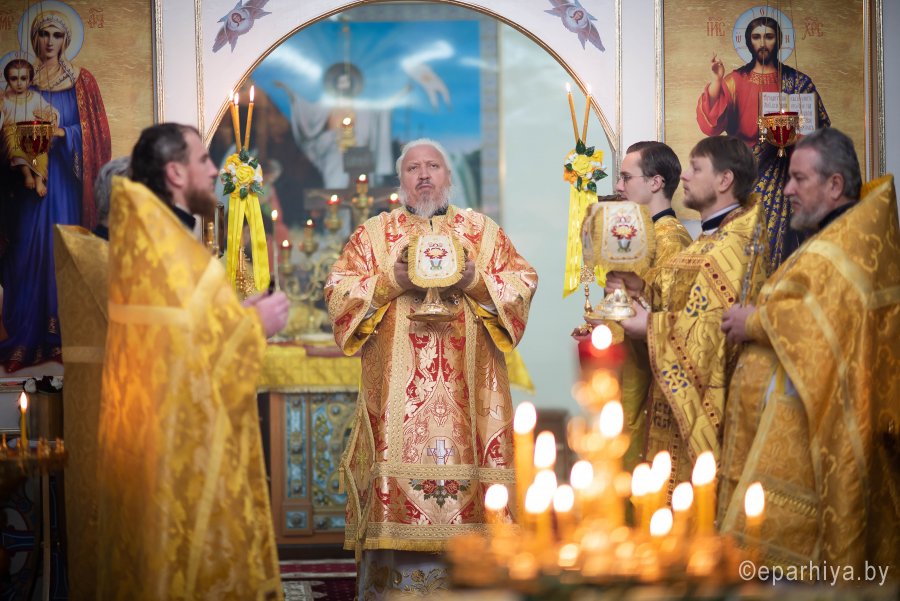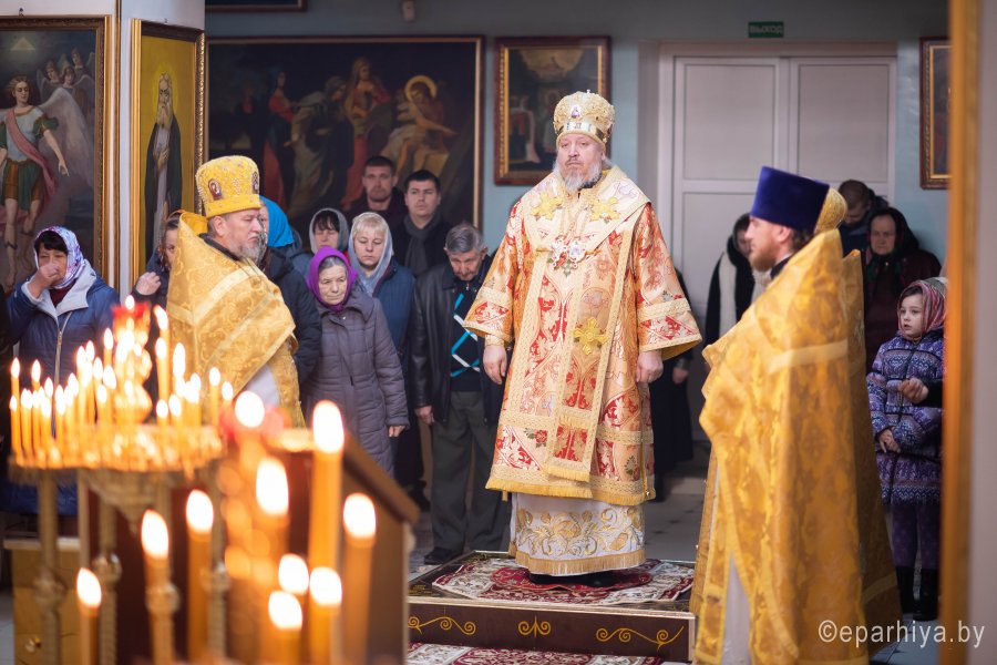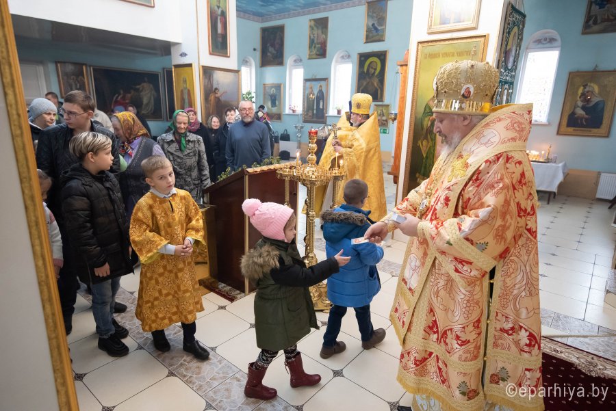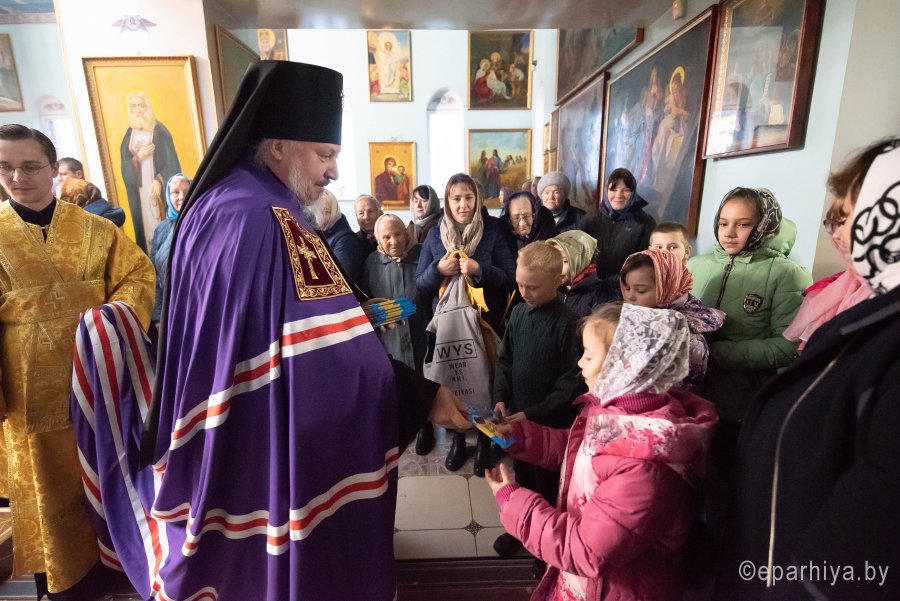 Божественную литургию в Неделю 20-ю по Пятидесятнице в приходе храма Рождества Пресвятой Богородицы г.п. Уваровичи 3 ноября 2019г. совершил Высокопреосвященнейший Стефан, архиепископ Гомельский и Жлобинский. Высокопреосвященнейшему сослужили: секретарь Гомельской епархии протоиерей Георгий Алампиев, благочинный Буда-Кошелевского округа протоиерей Сергий Пешко, настоятель прихода протоиерей Михаил Борисенок и духовенство епархии. По окончании богослужения Высокопреосвященнейший Стефан поздравил прихожан с воскресным днем и обратился ко всем со словами архипастырского назидания. Владыка Стефан поздравил причастников с принятием Святых Христовых Таин, преподал всем архипастырское благословение и в память об общей молитве раздал всем присутствующим иконки. |