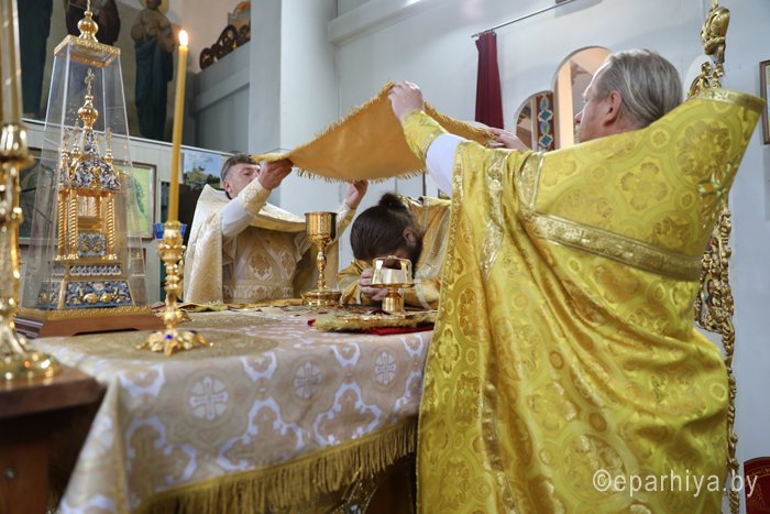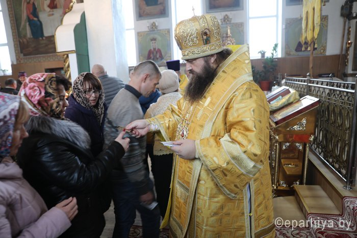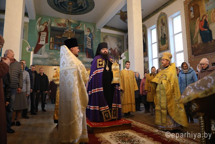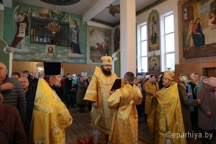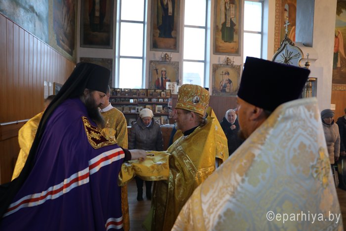 3 ноября 2019 года епископ Светлогорский Амвросий (Шевцов), викарий Гомельской епархии возглавил Божественную литургию в храме в честь святых всехвальных первоверховных апостолов Петра и Павла города Светлогорска. Ему сослужили благочинный Светлогорского округа протоиерей Александр Кисель, настоятель храма в честь святых всехвальных первоверховных апостолов Петра и Павла протоиерей Владимир Семенов и клирик прихода храма иерей Василий Скороход. После службы, обращаясь к светлогорцам, епископ Светлогорский Амвросий сказал: – Дорогие отцы, братья и сестры, сердечно всех поздравляю с праздником воскресного дня. Мы собираемся в воскресный день в храме, чтобы вознести наши молитвы Богу, чтобы Он благословил наши труды, нашу жизнь, чтобы Он жил в нашем сердце. Если Господь в нашей жизни будет на правильном месте – во главе угла, – то вся наша жизнь будет на своем месте. Божией всем помощи и благословения на предстоящую седмицу, на те труды, которые каждый из нас несет на своем месте. Чтобы Господь благословил наши труды, их нужно начинать молитвой. Дай Бог, чтобы покров Божией Матери и святых апостолов были на каждом нашем поприще. Аминь. На память о совместной молитве епископ Светлогорский Амвросий вручил участникам богослужения подарки – иконку Божией Матери Козельщанской, которая является святыней Никольского мужского монастыря города Гомеля. |