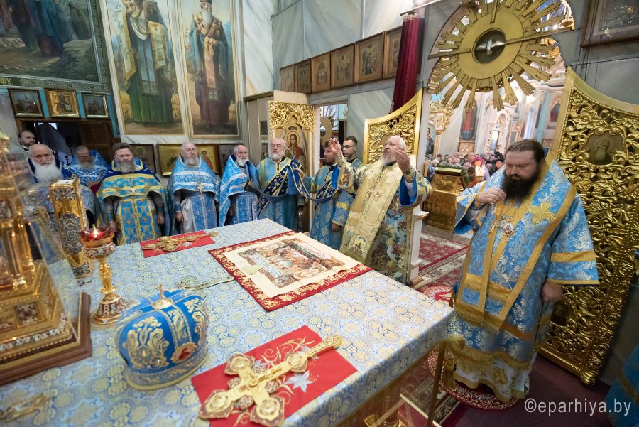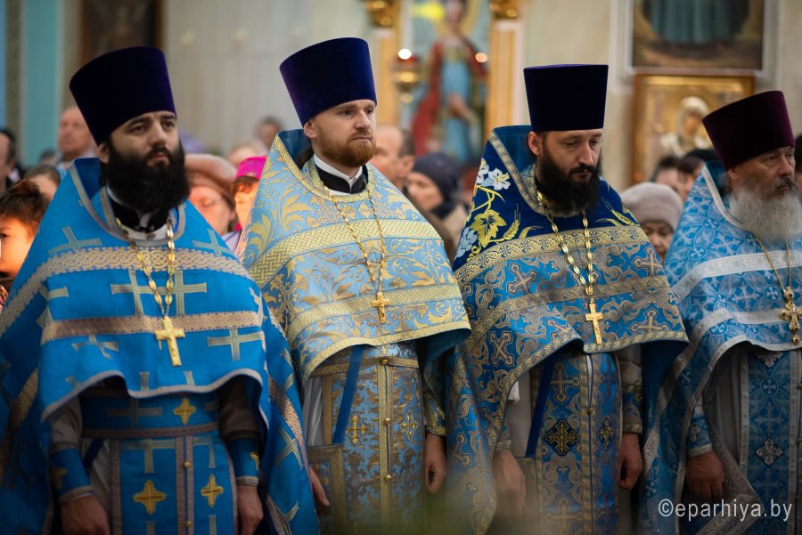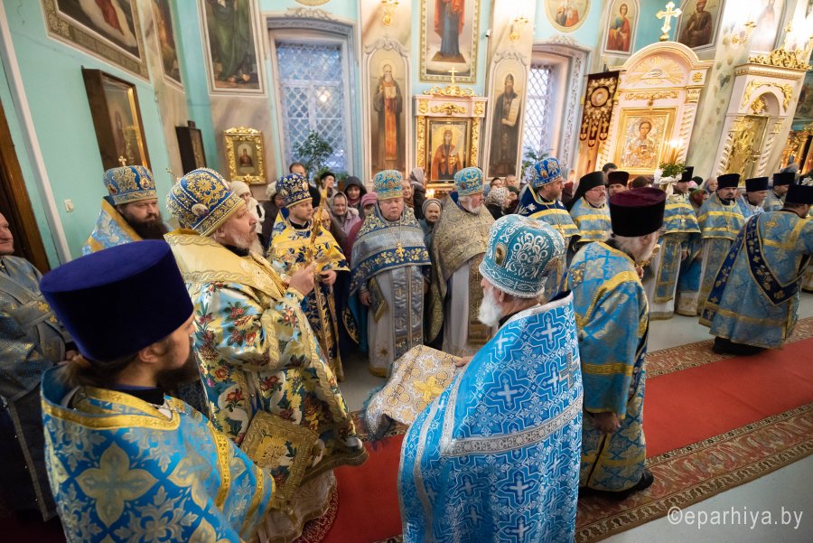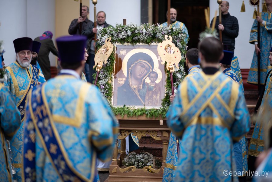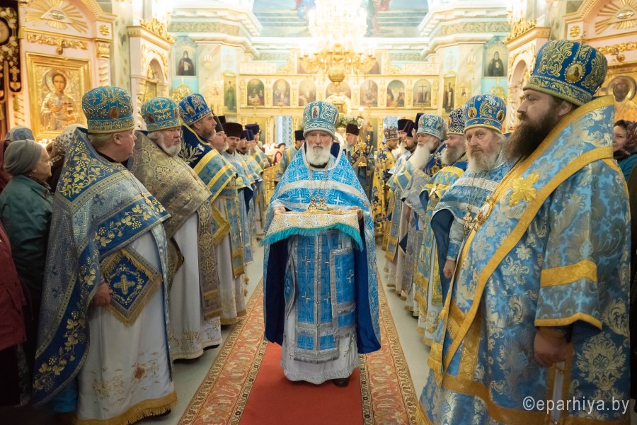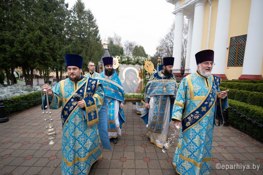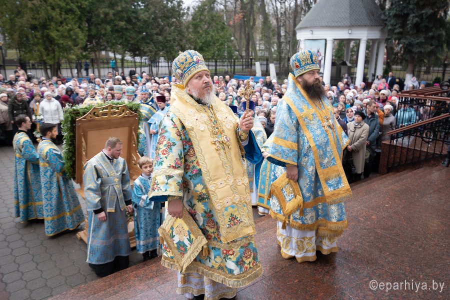 Икона Божией матери «Казанская» - один из самых почитаемых образов Пресвятой Богородицы у православных христиан. Именно этой иконой благословляли на брак, эту икону дарили при крещении и вешали у кроватки новорожденных. Нет ни одного дома, где бы не было этого святого Образа. Милость и помощь Царицы Небесной есть там, где есть незыблемая вера, Она всегда ходатайствует пред своим Сыном за тех, кто прибегает к Ней с твердой верой и усердной молитвой. Божественную литургию в праздник иконы Божией Матери «Казанская» в Петро-Павловском кафедральном соборе 4 ноября 2019 г. возглавил Высокопреосвященнейший Стефан архиепископ Гомельский и Жлобинский. Высокопреосвященнейшему сослужили: викарий Гомельской епархии епископ Светлогорский Амвросий, секретарь Гомельской епархии протоиерей Георгий Алампиев, духовник епархии протоирей Стефан Гладыщук, благочинные округов, председатели епархиальных отделов, настоятели приходов и духовенство епархии. За богослужением молились игумения Вера (Афонькина) с сестрами Тихвинского женского монастыря и старшая монахиня Архелая (Новикова) с сестрами Иоанно-Кормянского женского монастыря. По окончании богослужения Владыка Стефан возглавил крестный ход, поздравил прихожан и духовенство с праздником, причастников с принятием Святых Христовых Таин и обратился к молящимся со словами архипастырского назидания. |