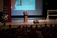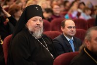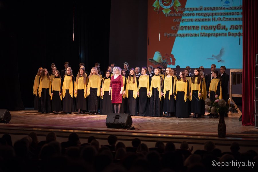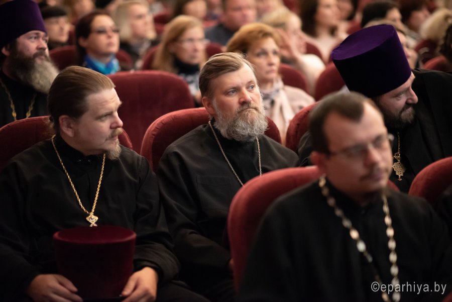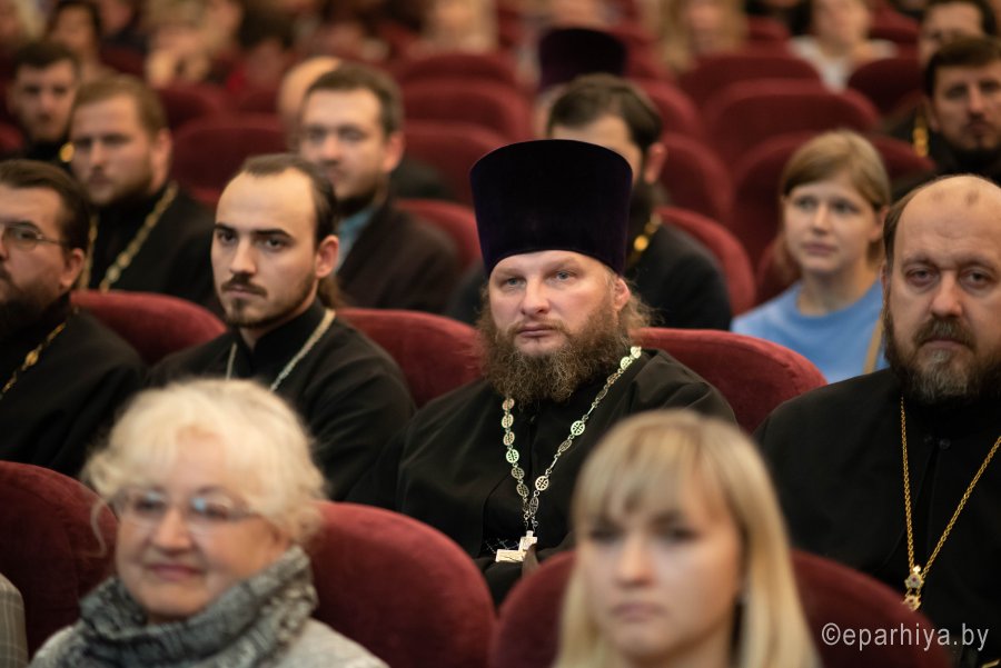 Одна изломанная судьба – трагедия. Миллионы судеб - уже статистика. Статистика военных судеб – предостережение истории. По прошествии многих лет, отделяющих нас от Великой Победы, всё, что связано с тем трагическим и героическим временем, до сих пор является предметом пристального внимания историков, публицистов, литераторов, кинематографов, краеведов. И тема XVI городских Покровских образовательных чтений «Великая Победа: наследие и наследники», которые открылись 4 ноября в стенах Городского центра культуры, выбрана неслучайно. Ведь в 2020 году наш народ будет праздновать 75- летие Победы в Великой Отечественной войне. Каждое поколение стремится взглянуть на историю Отечества с высоты новых знаний, потому что переосмысление прошлого приводит к более глубокому его постижению, приближает к истине. И Покровские чтения этого года – это ещё одна попытка осмысления уроков самой страшной трагедии ушедшего века, в ходе которой наш народ показал высшее проявление духа, пример массового героизма и огромного самопожертвования. Открылось пленарное заседание чтений словами приветствия заместителя председателя Гомельского городского исполнительного комитета Виталия Геннадьевича Атаманчука. Далее с архипастырским благословением и приветственным словом ко всем участникам чтений обратился архиепископ Гомельский и Жлобинский Стефан, который отметил, что всё дальше и дальше уходит от нас время самой кровавой войны в истории человечества. И постепенно забывается, что самое главное для каждого из нас – это мир, который оплачен жизнью десятков миллионов людей. Мировая история показывает, что величайшие трагедии всегда являются следствием отпадения человека от Бога, попрания непреложных духовных истин. Именно тогда, в годы жесточайших битв, страданий, потерь и разрушений на нашей земле началось возрождение церковной жизни, народ стал возвращаться к вере Христовой. Далее с докладом «Наследие и наследники: нить между прошлым и будущим» перед собравшимися выступил иерей Михаил Иванов, настоятель прихода храма Покрова Пресвятой Богородицы в деревне Переделка Лоевского района. «Восстановление церковной жизни на оккупированных территориях» - с такой темой выступила Силова Светлана Владимировна, заведующий кафедрой современных технологий довузовского образования Гродненского государственного университета имени Я.Купалы. Свои доклад «Великая Отечественная война: всё ли в порядке с названием» представил участникам чтений старший преподаватель кафедры «Философия, история, политология» Белорусского государственного университета транспорта Александр Петрович Елопов. И завершилась пленарная часть выступлением Натальи Ивановны Захаренко, методиста отдела туризма и краеведения ГУО «Гомельский городской центр дополнительного образования детей и молодёжи» о педагогах - участниках тех страшных событий: «Из окопов фронтовых к партам школьным». По окончание пленарной части, по доброй традиции, прозвучали музыкальные номера от творческих коллективов г.Гомеля: народного вокального ансамбля учителей «Глория» ГУО «Детская школа искусств №4 г.Гомеля», Гомельского государственного колледжа искусств им.Ф.Н.Соколовского и городской филармонии. В холле центра культуры были представлены различные тематические экспозиции: выставка п