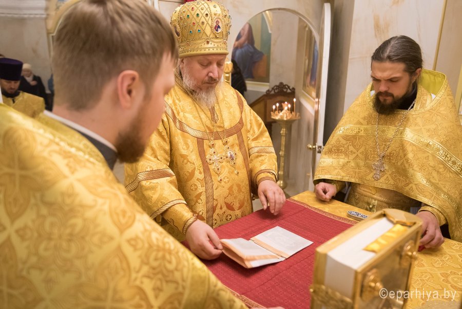Божественную литургию во вторник 21-й седмицы по Пятидесятнице 5 ноября 2019г. Высокопреосвященнейший Стефан, архиепископ Гомельский и Жлобинский в сослужении духовенства собора совершил в крестильном храме Петро-Павловского кафедрального собора г.Гомеля. По окончании богослужения Владыка Стефан поздравил причастников с принятием Святых Христовых Таин и обратился к молящимся со словами Архипастырского назидания. |