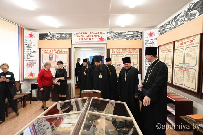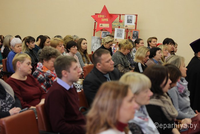 Великая Победа в страшной кровопролитной Великой Отечественной войне, потрясшей весь мир в прошлом столетии, волнует сердца людей до сих пор. Память о духовном подвиге народа, о простых людях, защищавших Родину с оружием в руках и с Богом в сердце сохранится в истории нашего Отечества навсегда. 5 ноября 2019 года, в ГУО «Средняя школа № 9 г. Светлогорска» состоялось открытие V районных Покровских образовательных чтений по теме «Великая Победа: наследие и наследники». Открылось пленарное заседание чтений архипастырским благословением и приветственным словом ко всем участникам форума епископа Светлогорского Амвросия, викария Гомельской епархии. – Нынешние районные Покровские чтения посвящены будущему 75-летию Победы в Великой Отечественной войне, – сказал Его Преосвященство. – Эта война – подвиг народа. Это подвиг, потребовавший огромных усилий, но он увенчался победой. Благодаря этой победе мы сейчас живем под мирным небом. Память о том подвиге и принесенных жертвах важно передать следующим поколениям, чтобы они и в будущем сохраняли на нашей земле мир. Об этом нужно говорить нашей молодежи, которая ищет героев и настоящий, подлинный пример. Епископ Светлогорский Амвросий поблагодарил педагогов и пожелал им помощи Божией и терпения в их нелегком труде. Далее с приветственным словом к участникам чтений обратилась начальник отдела образования Светлогорского районного исполнительного комитета Жанна Васильевна Черкас, которая отметила, что проведение Покровских образовательных чтений – это знаменательное событие в жизни района, а тема форума имеет большое значение для воспитания подрастающего поколения. Доклад на тему «О христианском понимании патриотизма» представил слушателям протоиерей Павел Красиченко, настоятель прихода храма Успения Пресвятой Богородицы д. Узнаж Светлогорского района. О воспитании патриотизма на традициях прошлого и современного опыта рассказал иерей Николай Бондарев, настоятель прихода храма святой равноапостольной Марии Магдалины г.п. Паричи Светлогорского района. Заместитель директора по учебной работе ГУО «Паричская средняя школа» Татьяна Ивановна Митрахович представила опыт работы по теме «Сохранение исторической памяти о Великой Отечественной войне – важнейшая задача гражданско-патриотического воспитания», познакомила всех присутствующих с поисковой и краеведческой работой учащихся и школьного музея боевой славы, поделилась опытом исследовательской деятельности по теме «Холокост в истории моей семьи», раскрыла интересные факты из жизни репрессированных священников г.п. Паричи. В ходе пленарного заседания звучали музыкальные номера, представленные учащимися ГУО «Средняя школа № 9 г. Светлогорска». По окончании форума епископ Светлогорский Амвросий посетил школьный музей боевой славы 1-го гвардейского Донского танкового корпуса «Ради жизни на Земле». Руководитель музея, учитель истории Нина Ивановна Гриневич провела экскурсию по экспозиции времен Великой Отечественной войны, рассказала о героях Советского Союза, погибших при освобождении Светлогорского района. Владыка Амвросий поблагодарил организаторов мероприятия за теплую встречу и сделал памятную запись в Книге почетных гостей музея. Материал предоставлен Светлогорским благочинным округом |