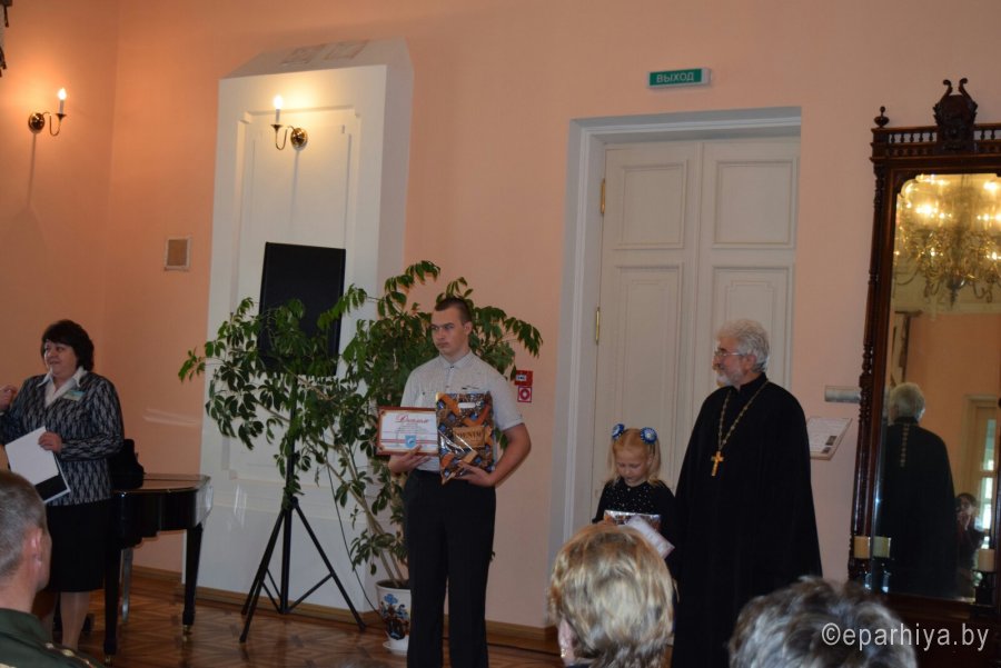 В усадьбе Козелл-Поклевских пятого ноября подвели итоги конкурса «Красный Берег. Места, хранящие воспоминания». Конкурс был приурочен к 75-летию освобождения Беларуси от немецко-фашистских захватчиков. В конкурсе приняли участие 58 учащихся общеобразовательных учреждений города Жлобина и Жлобинского района. В торжественной обстановке почетные гости - директор ГУК «Жлобинский историко-краеведческий музей» Шрейтер Нина Захаровна, настоятель прихода храма святого великомученика Георгия Победоносца аг. Красный Берег протоиерей Петр Петрушенко, военнослужащий войсковой части 55461 капитан Круглов Владимир Викторович – вручали призы победителям, дипломы и благодарственные письма. Материал предоставлен Жлобинским благочинным округом |