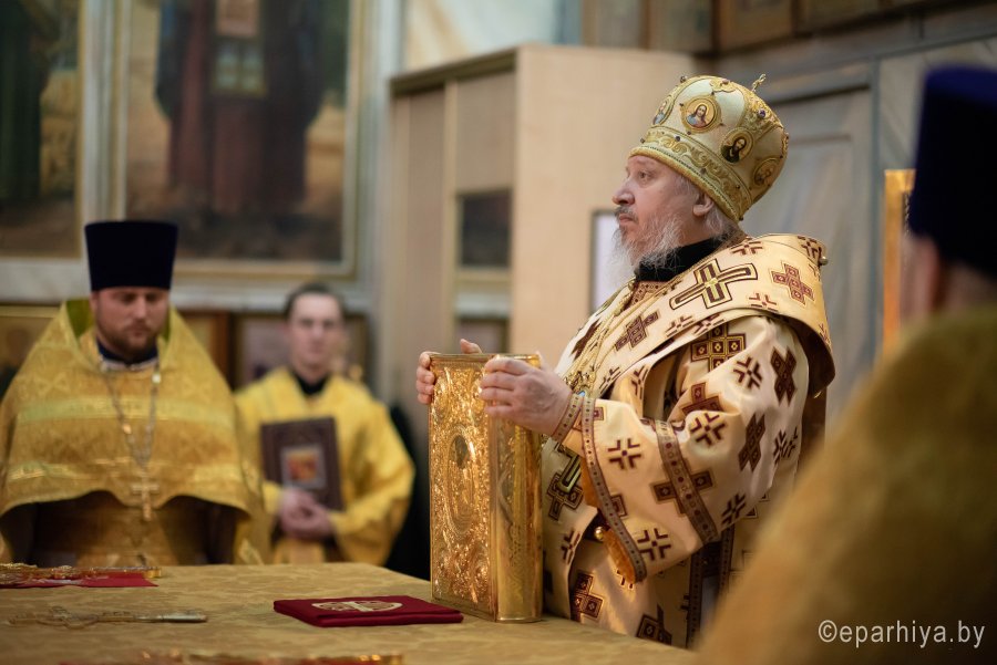 Божественную литургию в Петро-Павловском кафедральном соборе г.Гомеля 7 ноября 2019г. в четверг 21-й седмицы по Пятидесятнице совершил Высокопреосвященнейший Стефан архиепископ Гомельский и Жлобинский в сослужении духовенства собора. По окончании Литургии Владыка Стефан поздравил причастников с принятием Святых Христовых Таин и обратился к молящимся со словами Архипастырского назидания. |