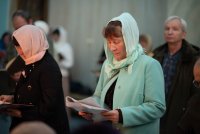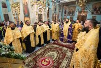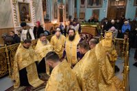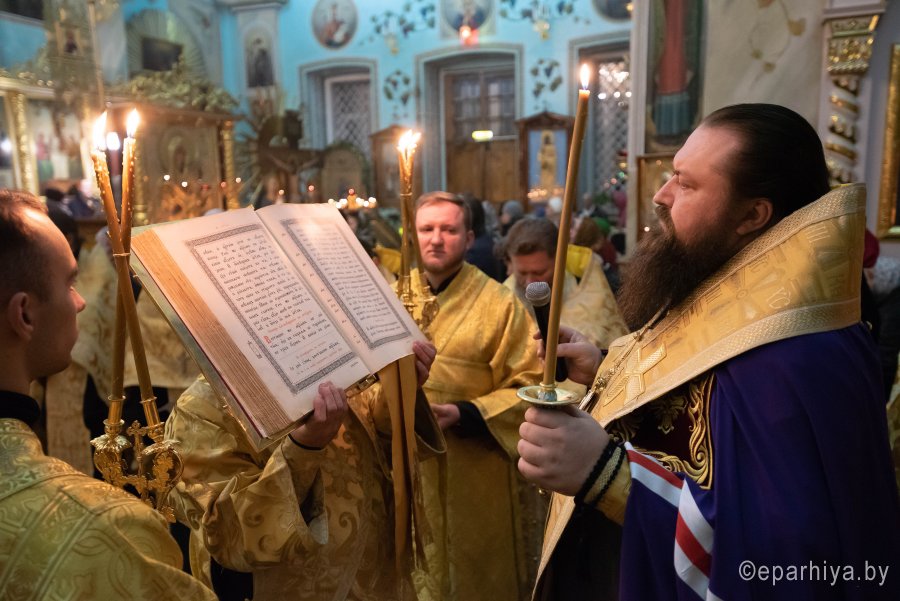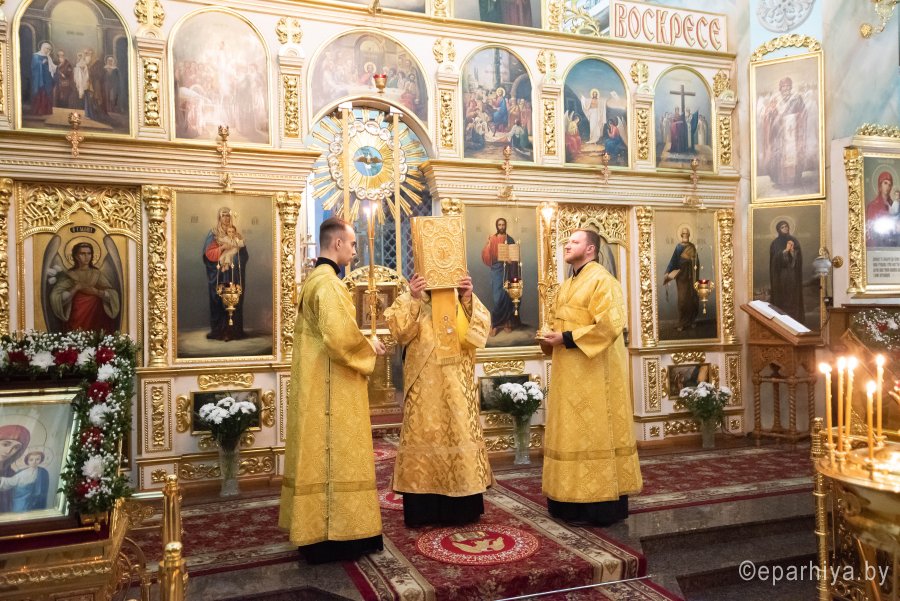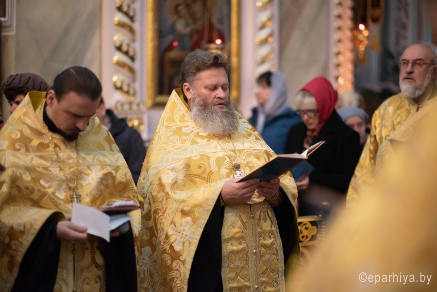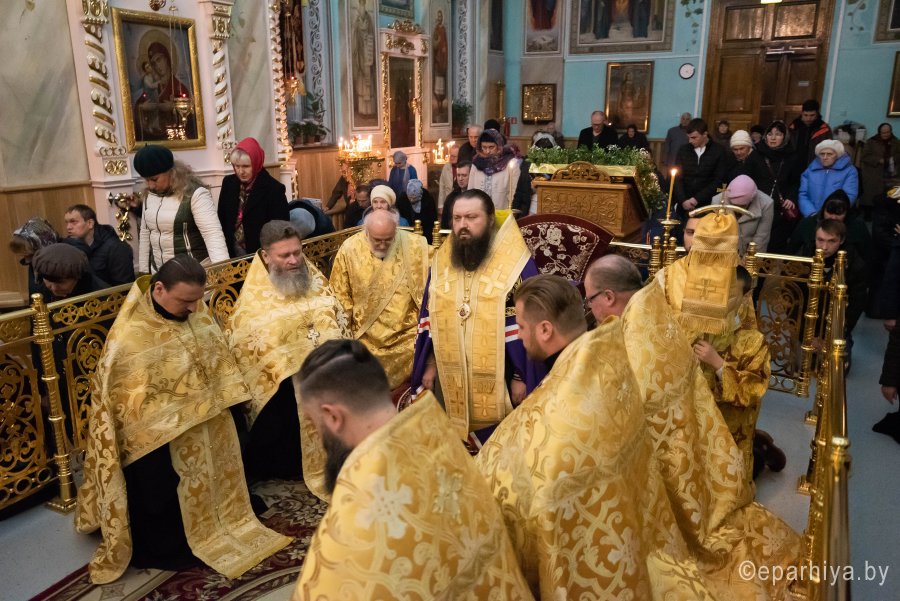 Вечернее богослужение с чтением акафиста на распев в Петро-Павловском кафедральном соборе г.Гомеля 10 ноября 2019г. совершил Преосвященный Амвросий епископ Светлогорский, викарий Гомельской епархии в сослужении духовенства собора. По окончании богослужения Владыка обратился к молящимся со словами Архипастырского назидания. |