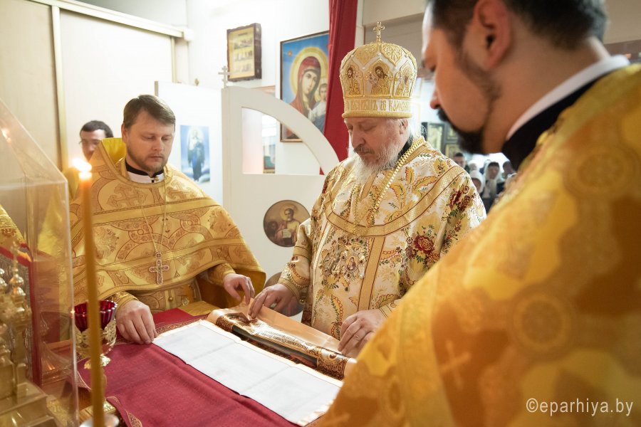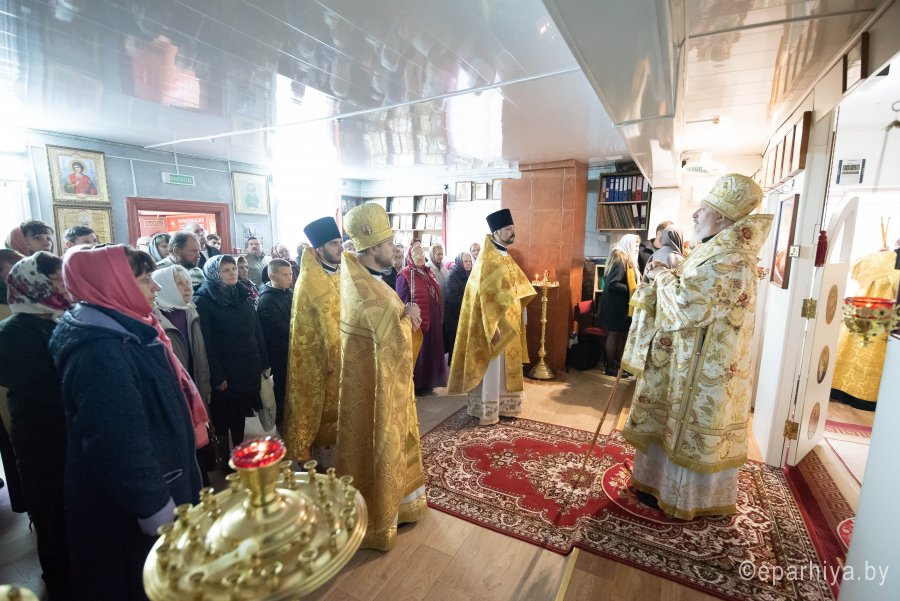 Божественную литургию в Неделю 22-ю по Пятидесятнице в приходе храма Вознесения Господня пос. Новая Гута 17 ноября 2019г. совершил Высокопреосвященнейший Стефан, архиепископ Гомельский и Жлобинский. Высокопреосвященнейшему сослужили: секретарь Гомельской епархии протоиерей Георгий Алампиев, благочинный Гомельского районного округа протоиерей Артемий Кривицкий, настоятель прихода иерей Павел Брагинец и духовенство епархии. По завершении Божественной литургии Высокопреосвященнейший Стефан, совершил заупокойную литию по погибшим в дорожно-транспортных происшествиях. Третье воскресенье ноября в соответствии с резолюцией Генеральной Ассамблеи ООН объявлено Всемирным днем памяти жертв дорожно-транспортных происшествий. По благословению Высокопреосвященнейшего Стефана в этот день в храмах Гомельской епархии совершаются поминовения всех погибших в ДТП. По окончании богослужения Владыка Стефан поздравил настоятеля прихода Павла Брагинца с Днем рождения, причастников с принятием Святых Христовых Таин и обратился к молящимся со словами Архипастырского назидания. |